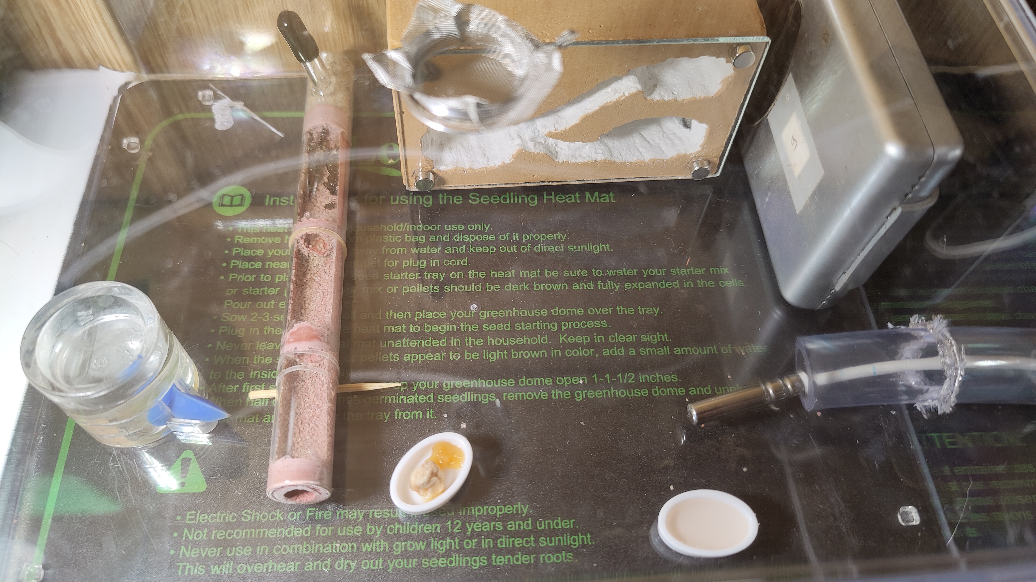 - mis plusieurs grillons (morts) dans l'ADC pour compenser l'absence de nourriture pendant mon absence