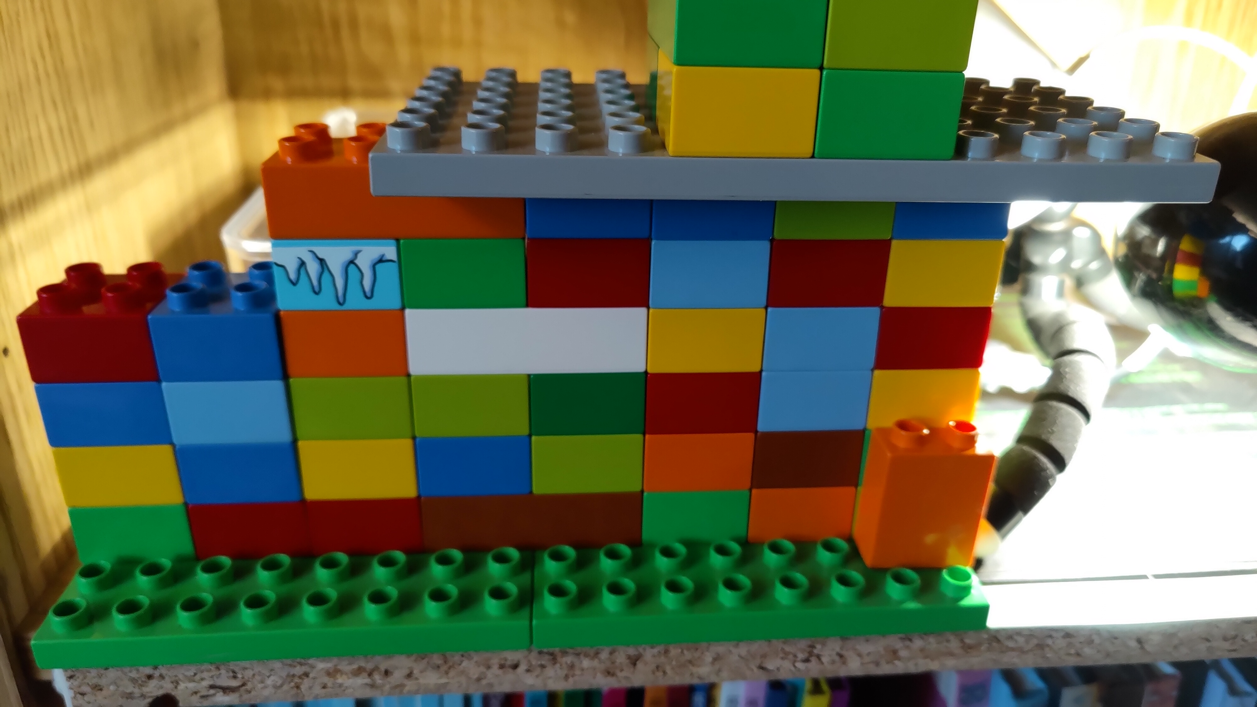 J'avais simplement remis le 2° tube en plâtre (humifié) afin qu'elles aient le choix pour l'humidité, mais elles préfèrent rester dans le sec, donc je viens de le retirer (pour ne pas surcharger l'ADC). Et pour leur tranquillité, j'ai mis un mur (en Duplo) pour qu'elles ne soient pas trop dérangées par les aller et venu dans le salon.