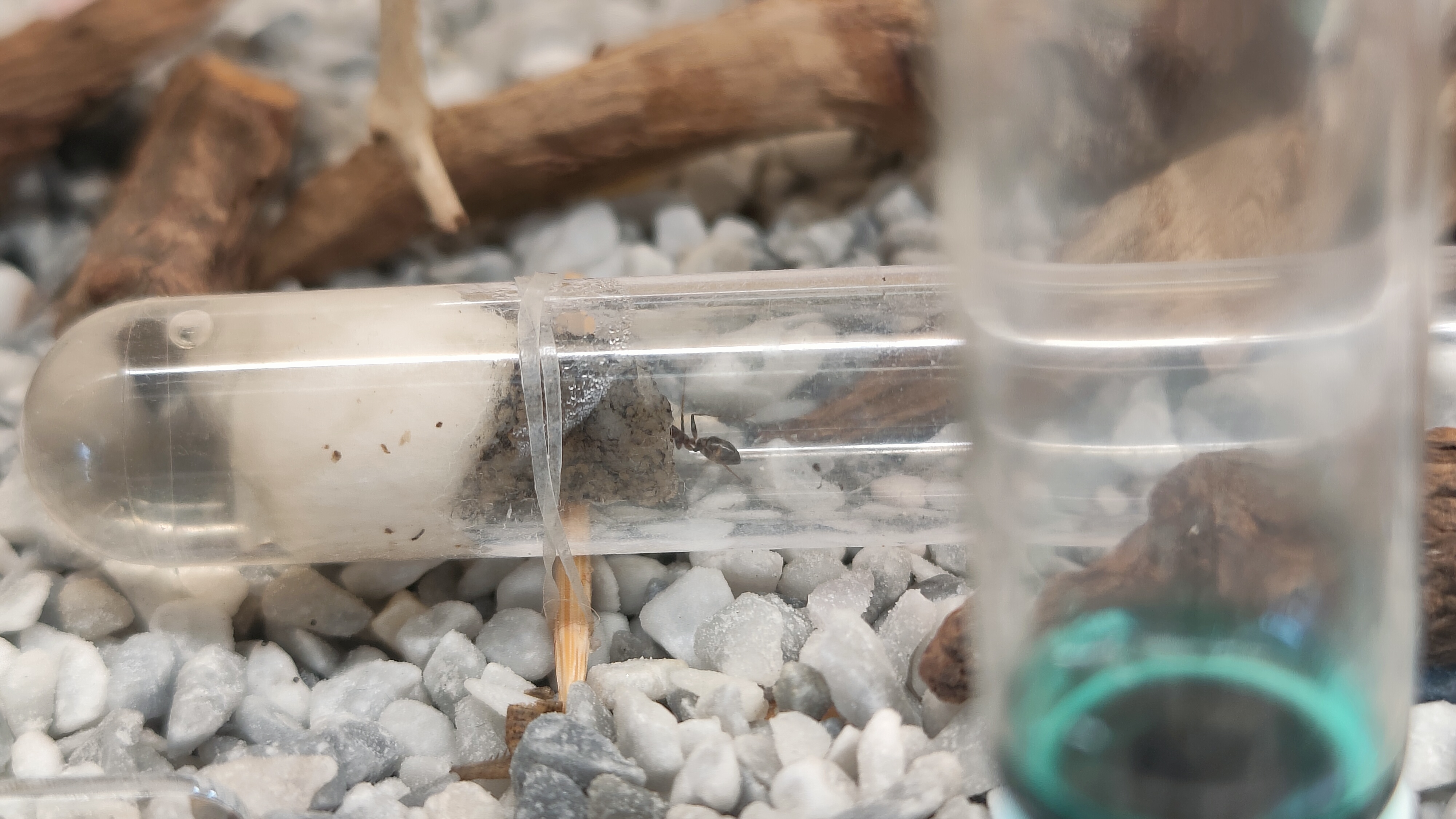 Fourmi dans le tube d'eau avec le coton., [Blog] Camponotus barbaricus de Mimiti
