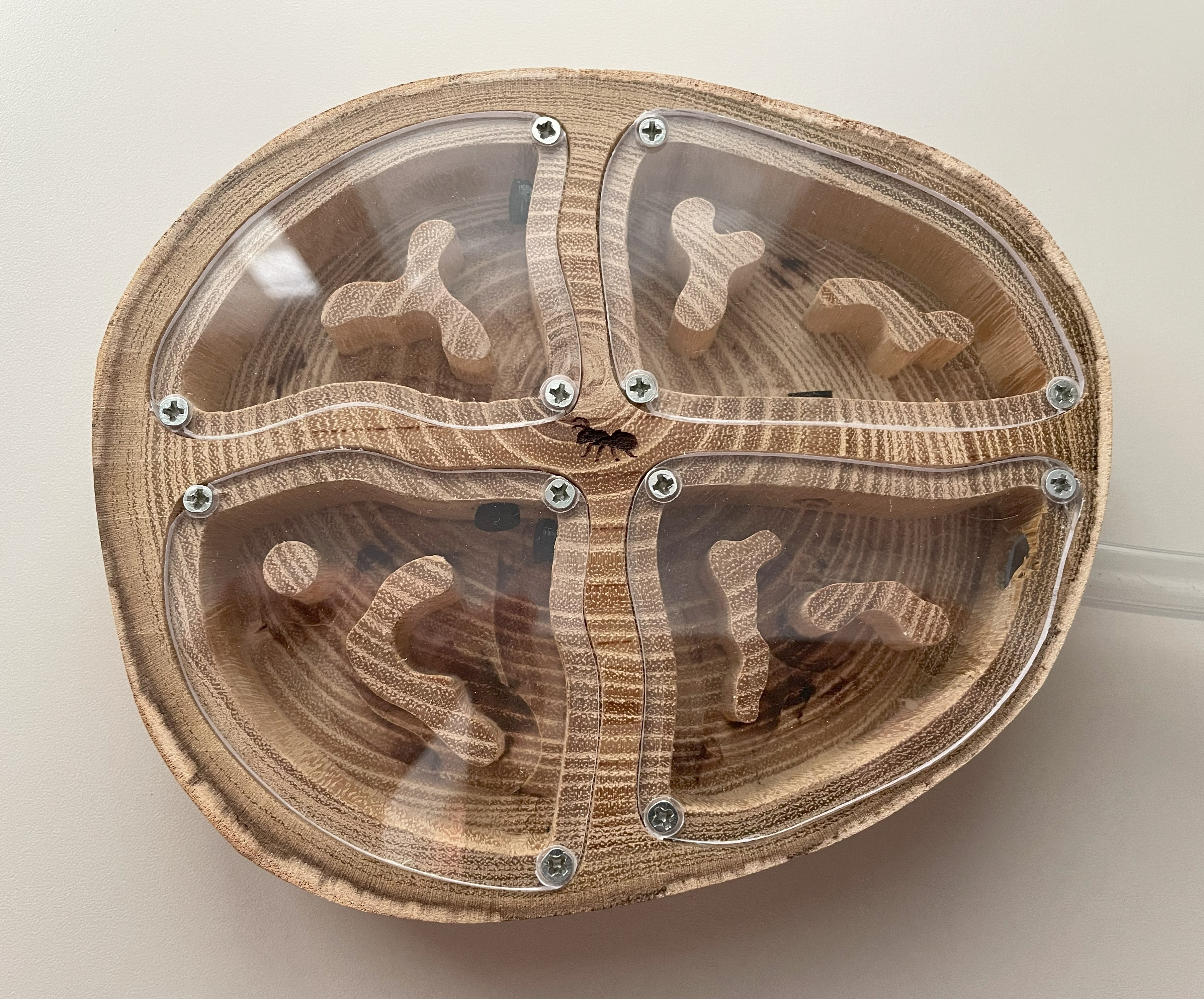 J’ai conçu ce nid avec des compartiments, j’ai donc fait des bouchons avec mon IMP 3D. Je les retirerai pour libérer de la place quand la fourmilière grandira.