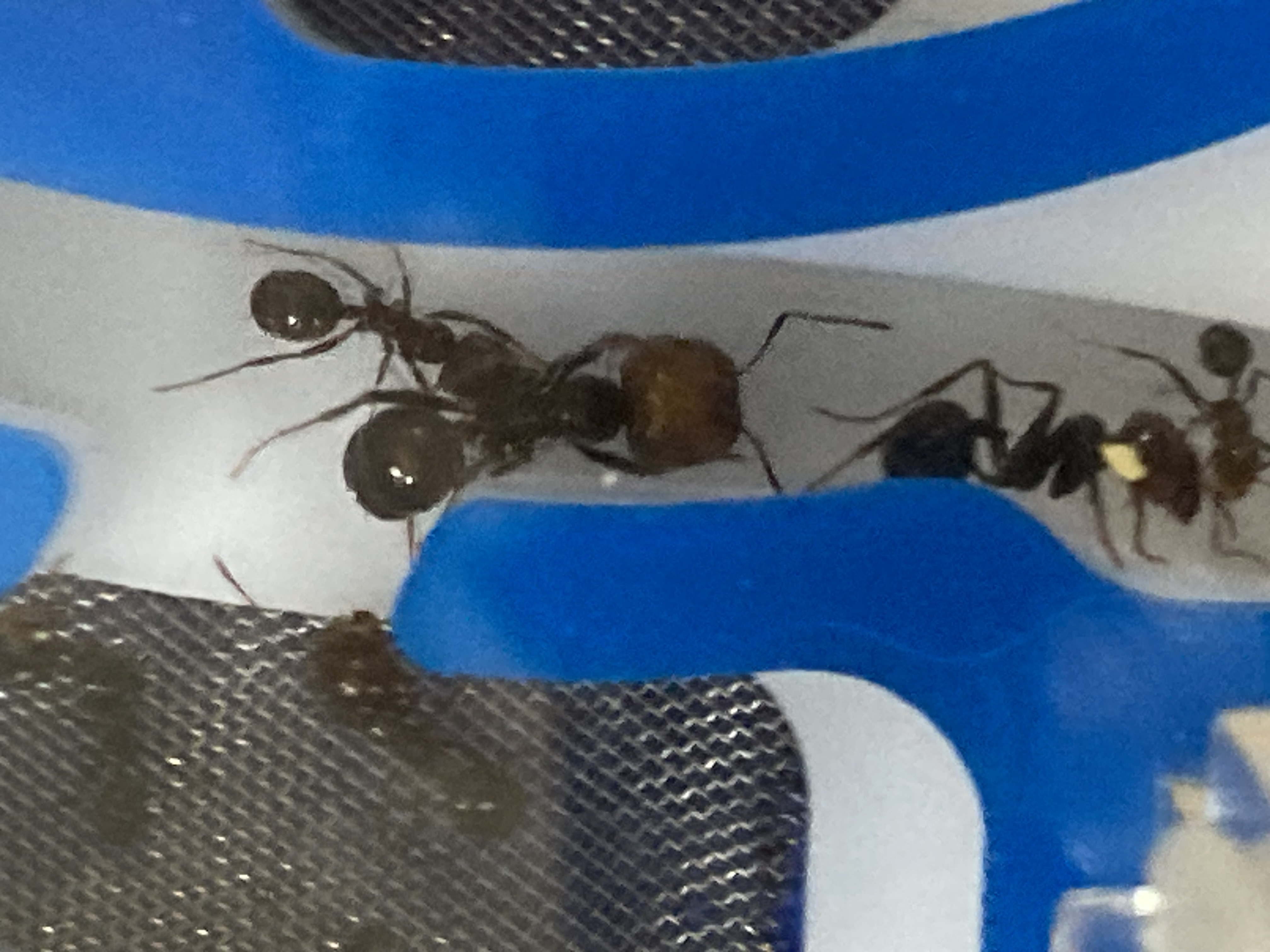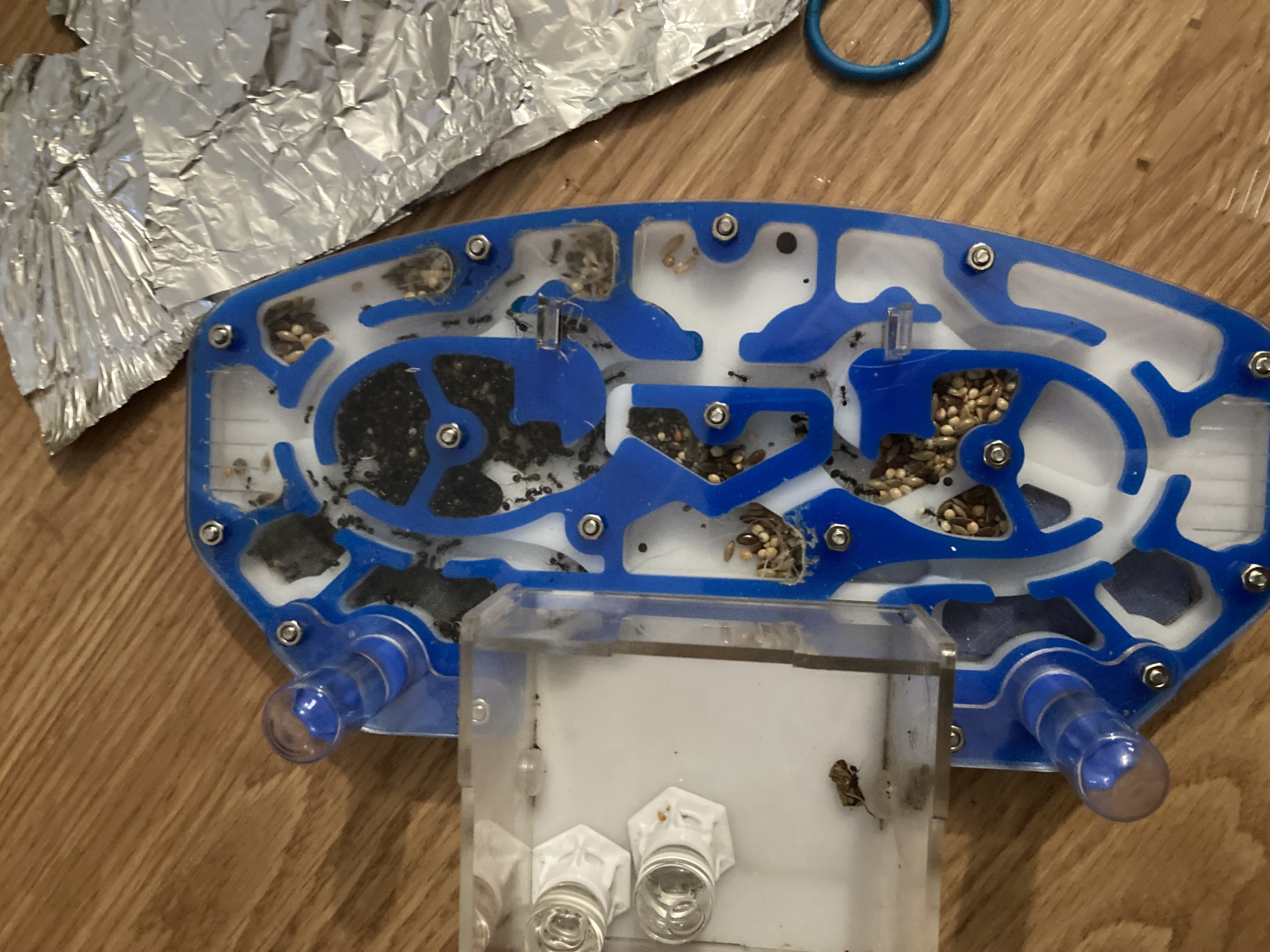 Côté Messor ça se développe toujours beaucoup ! Plein de couvain, grenier conséquent, plein de média et 3 nouveaux majors ce qui fait :