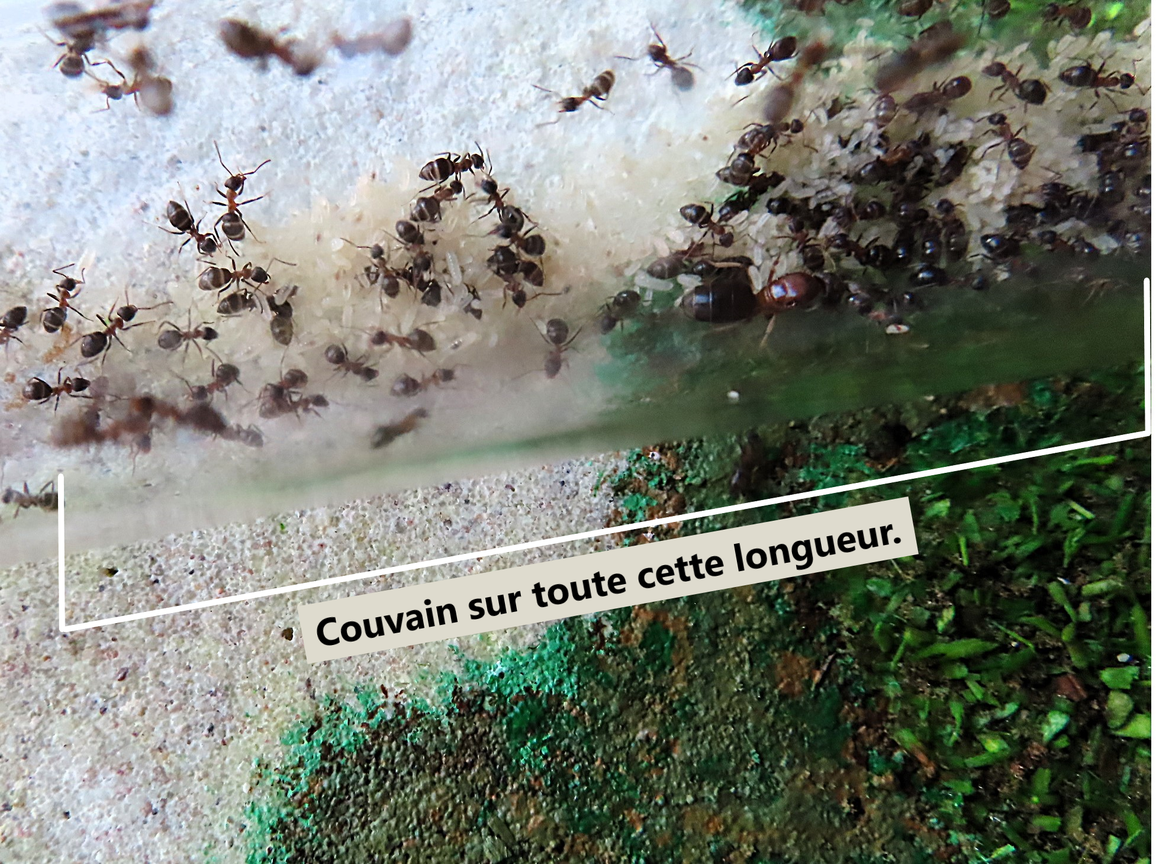 Tout s’est bien passé, même la pêche fort laborieuse aux ouvrières restantes et très, très nombreuses dans leurs Tupperwares d’origine. Cependant, je suis resté de garde deux jours de suite auprès de ces antariums pour intervenir en cas de problème, notamment en veillant sur le premier, celui destiné à Dimitri, parce que je ne tiens pas à lui refiler un truc foireux.