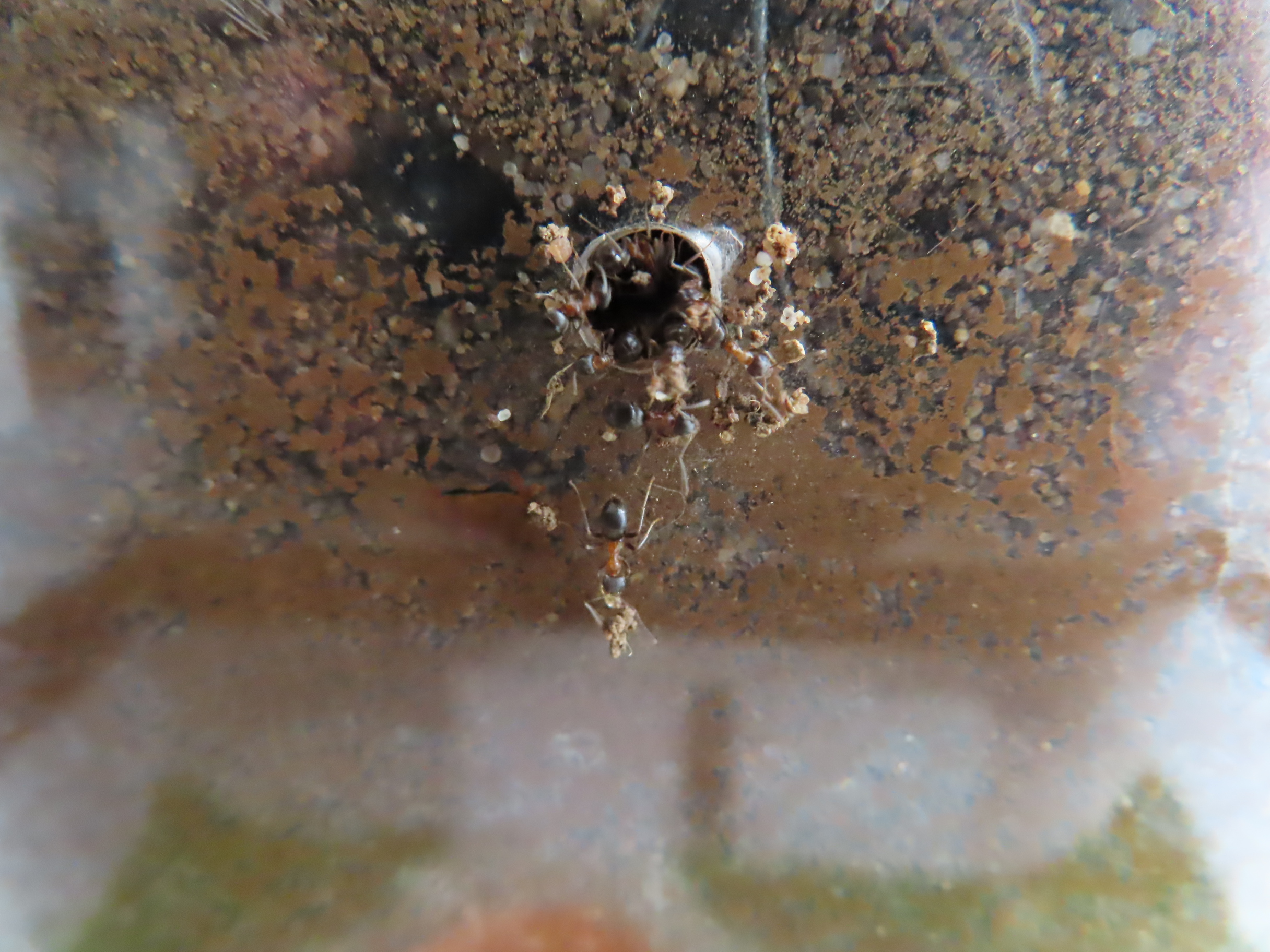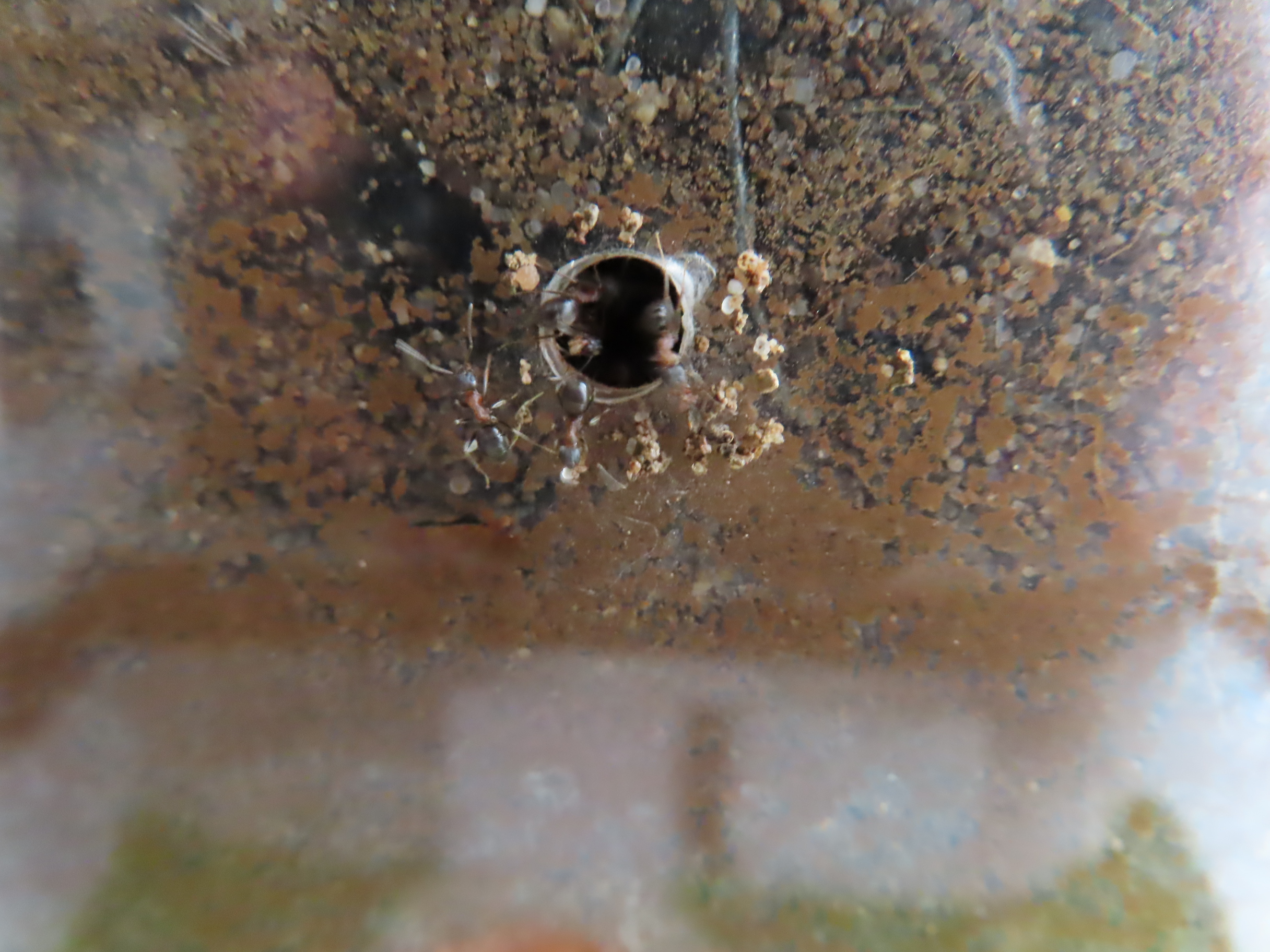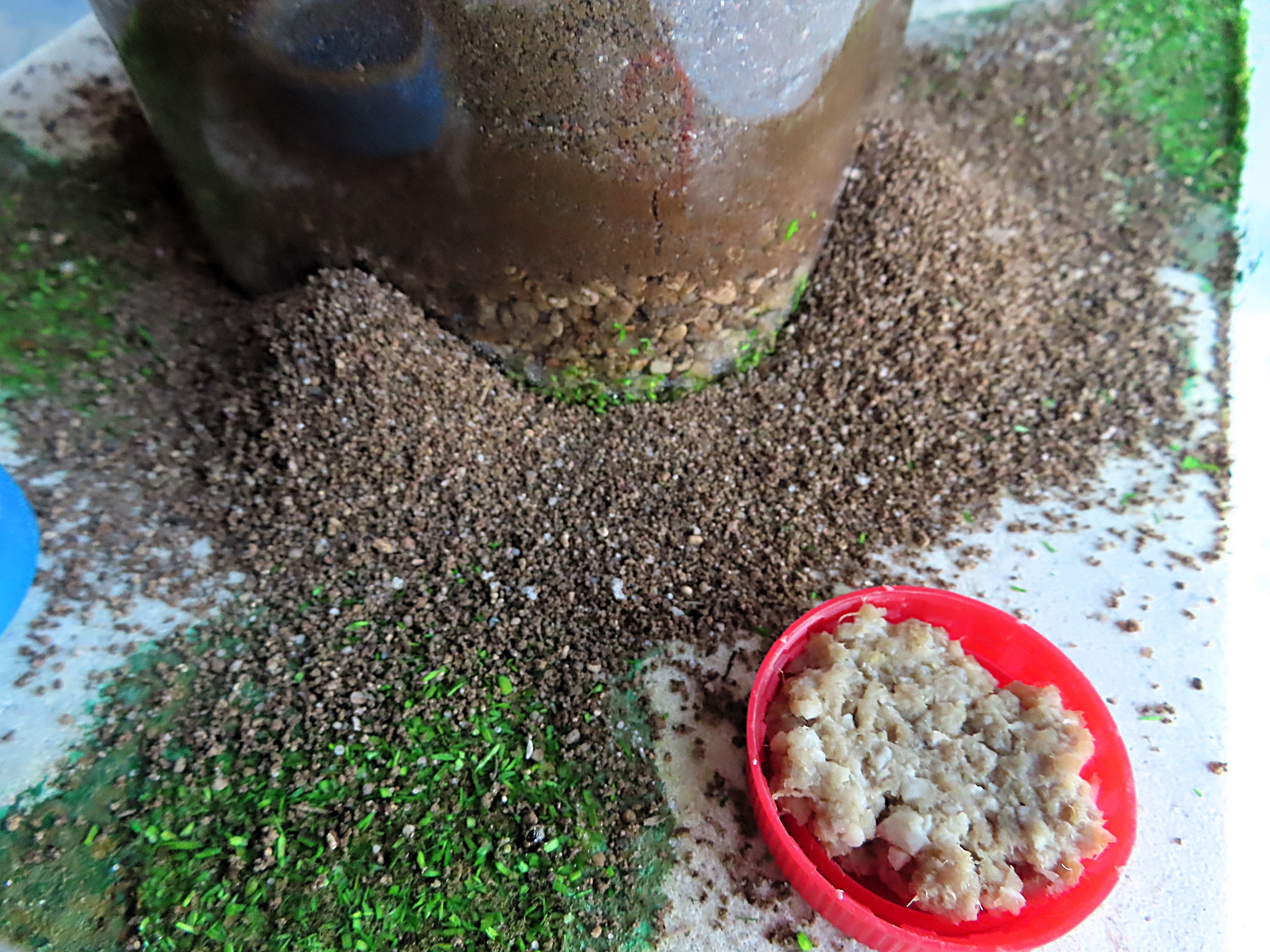 Photo n° 28 ► Le deuxième antarium a été peuplé à son tour et les ouvrières ont elles aussi attendu la nuit pour se mettre au travail d'ouverture des tunnels.