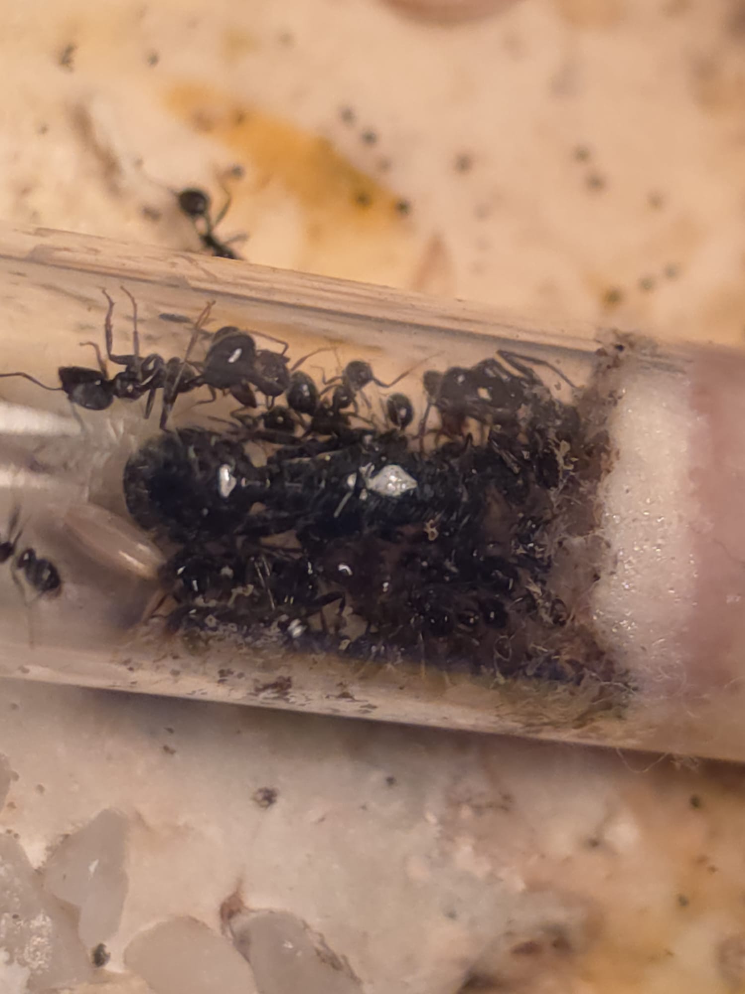 Comment se fait-il que tu ne puisses pas déménager tes fourmis de leur nid dont tu dis qu'il est fermé alors que tu les y as forcément introduites un jour, et de quelle façon (?). :-s