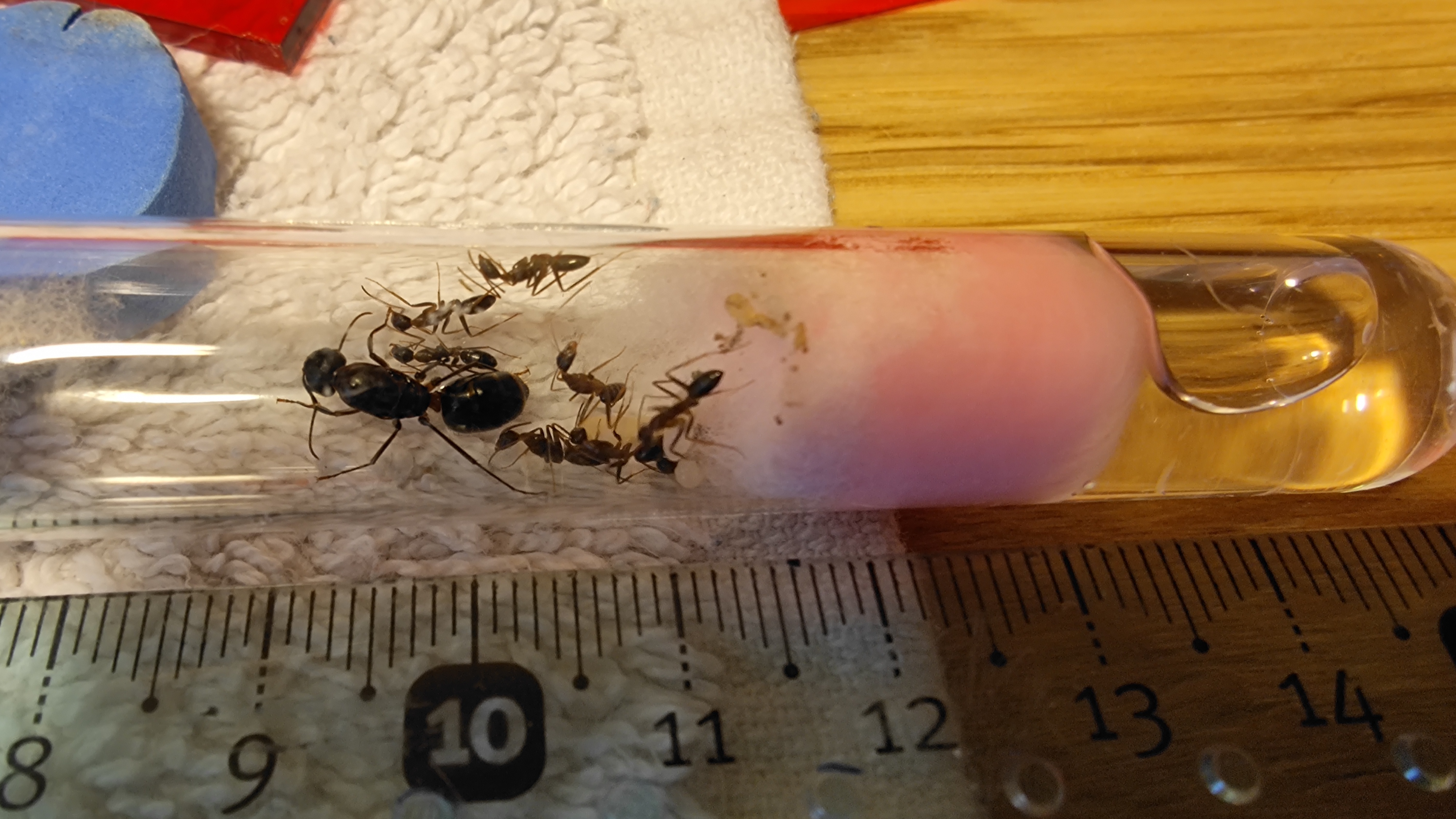 Pour l’abreuvoir avec mousse PVA, je confirme, c’est top ! Mes Camponotus sanctus et mes Meranoplus en ont, et c’est juste parfait ! Je viens d’ailleurs d’en recommander un pour mes Messor. Il faut juste prévoir des petits bouchons de PVA en remplacement si elles les cradoquent.