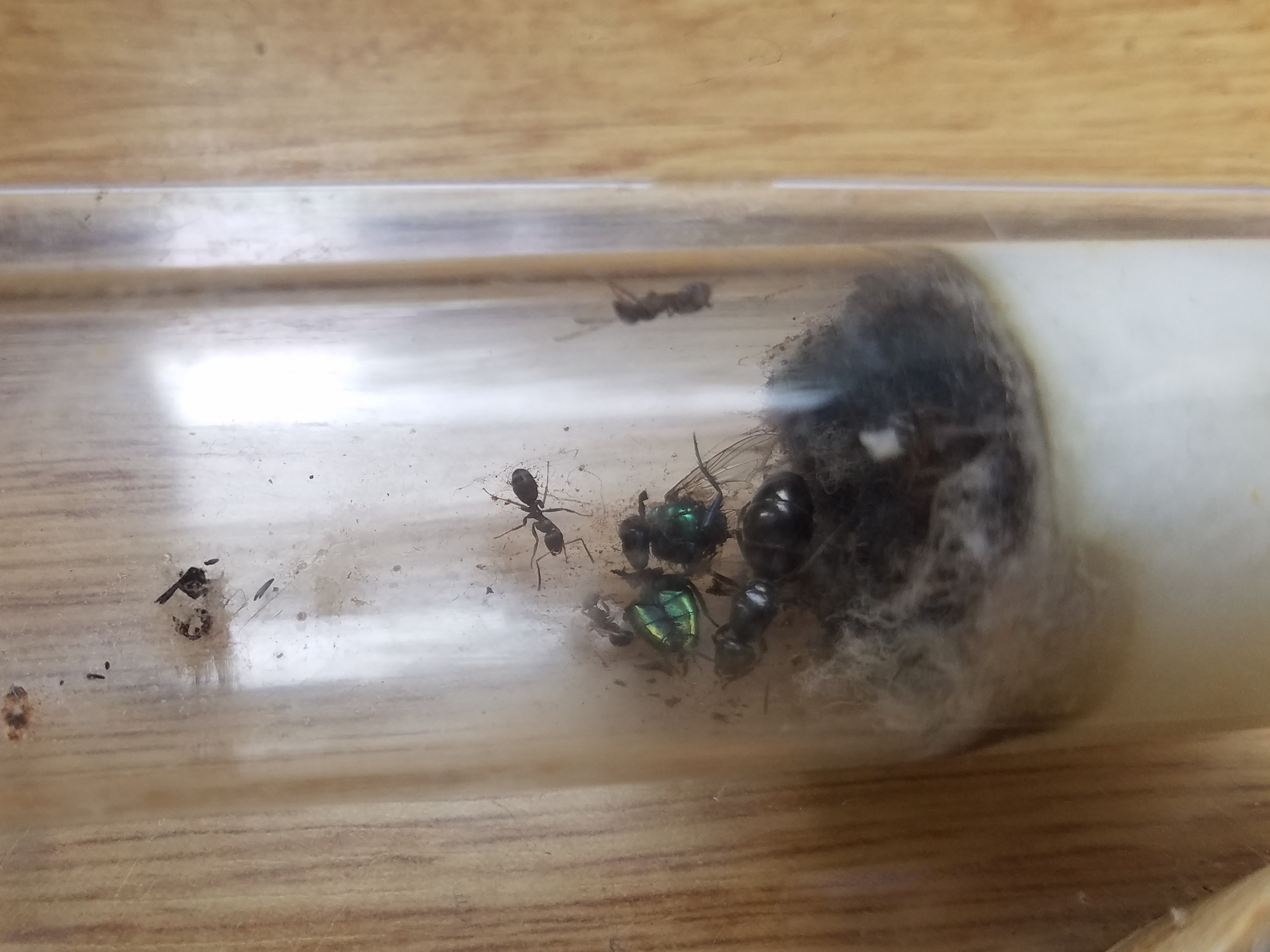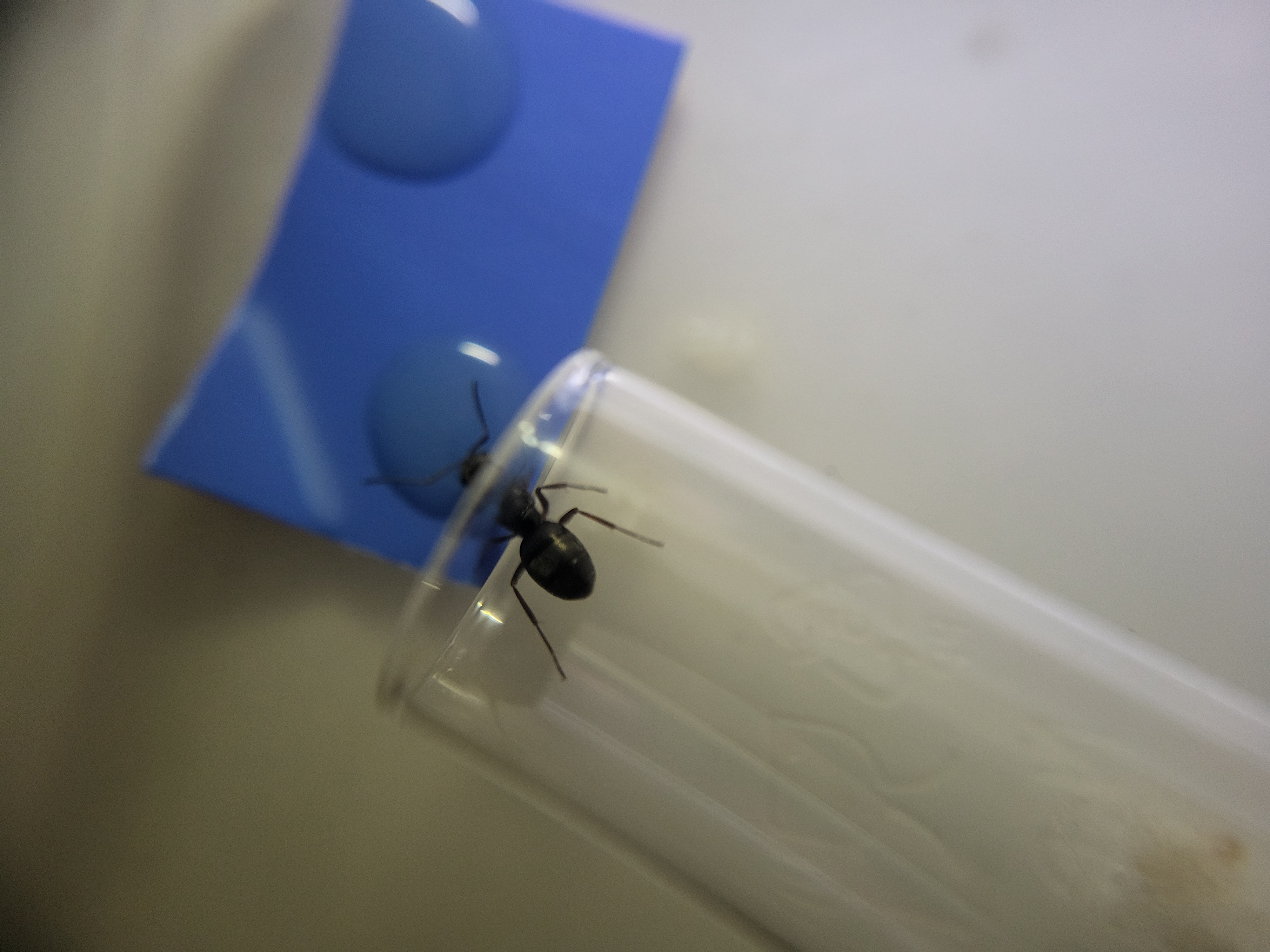 J'ai mis en place un système qui relie ma colonie de Messor barbarus 2 et mes Formica fusca en ne les séparant que d'une petite grille afin de voir si le contact antennaire allait pousser les Messor barbarus à faire plus de majors, résultat pas vraiment concluant sachant que le contact à travers la grille est très rare.