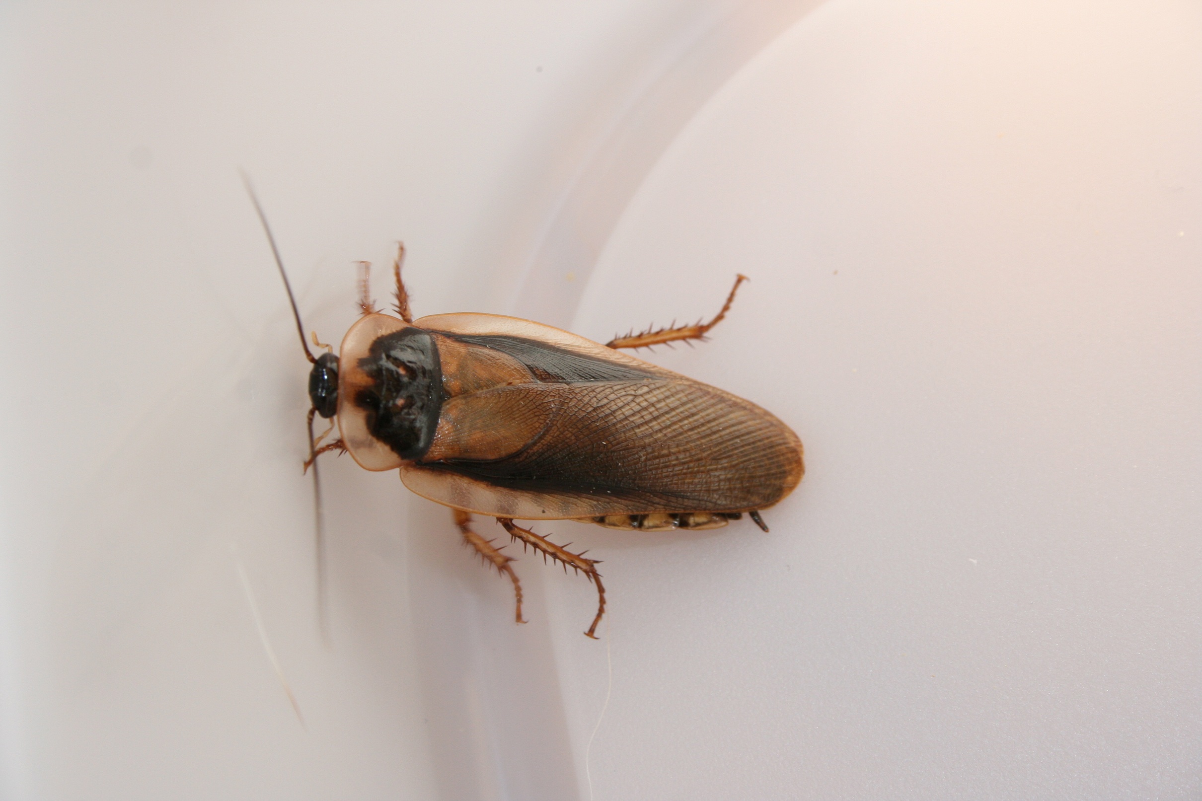 Après la mue, les blattes sont toutes blanches et cela dure quelques heures. C'est une phase critique pour les blattes car leur carapace est alors toute molle et leur pattes très fragiles: