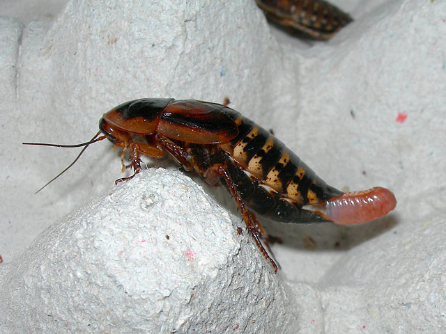 Cela ne veut pas dire qu'elle ne fait pas d'oothèque, elle la garde simplement à l'intérieur de son corps jusqu'à ce que les juvéniles soient prêts à naître.