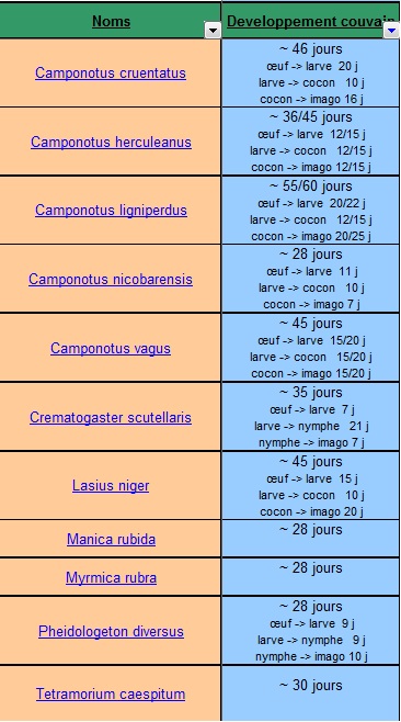 Je crée un sujet pour faire part des observations des membres du forum quant au temps de développement du couvain selon les espèces.