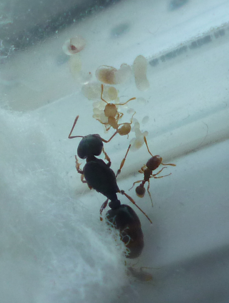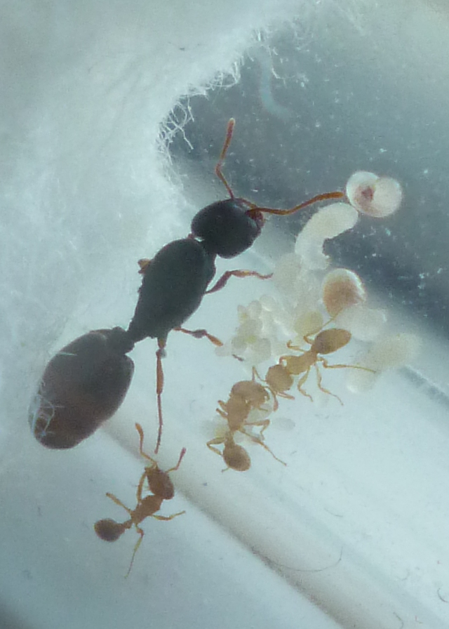 Il y a une semaine j'ai commencé à les nourrir suite à la naissance des premières ouvrières et à les observer mais là je commence à me demander si ce sont réellement des Pheidole pallidula comme indiqué sur l'annonce.