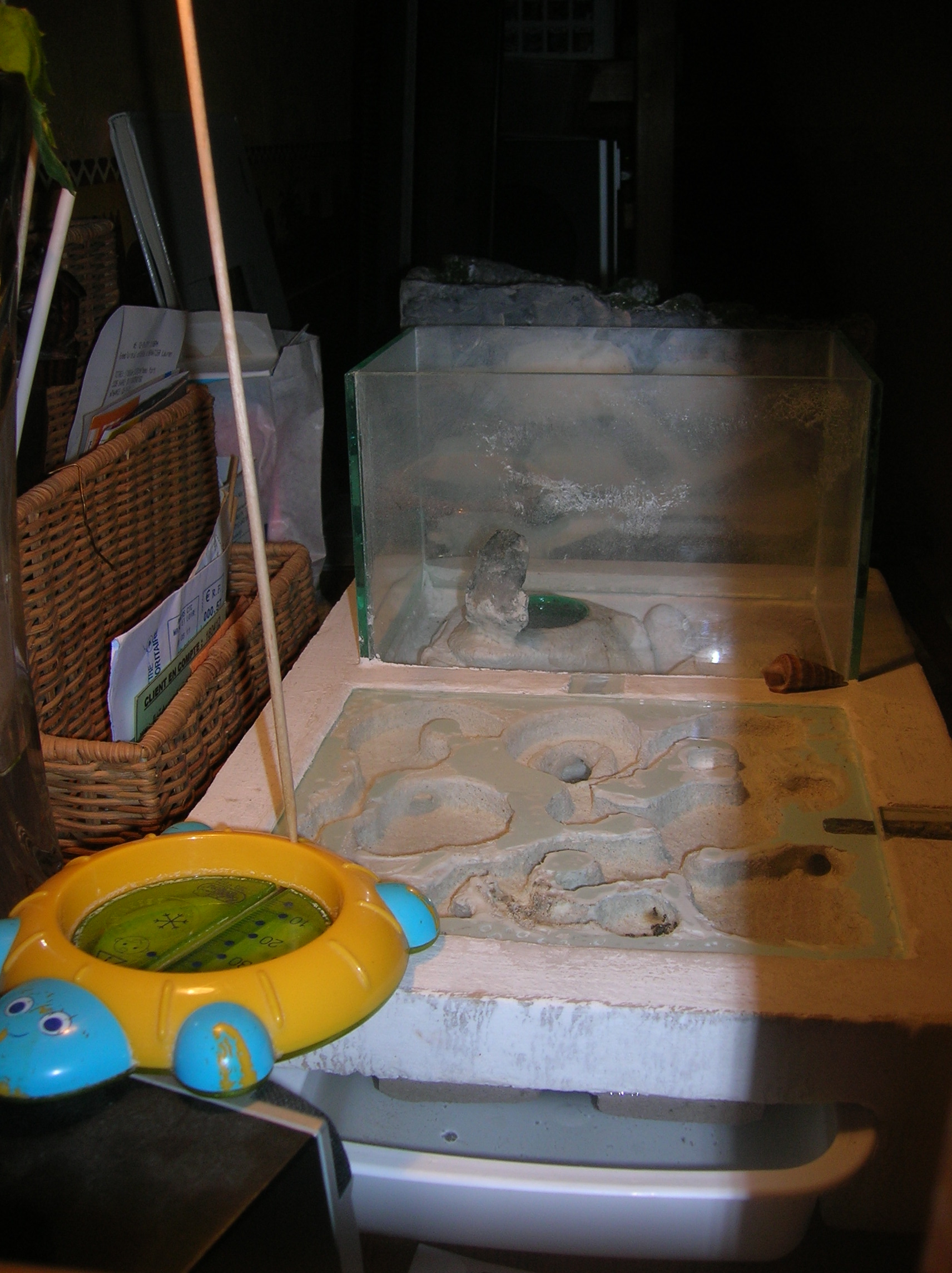 Je chauffe pendant la journée avec une simple lampe de bureau orientable (température à 25-27 °C).
