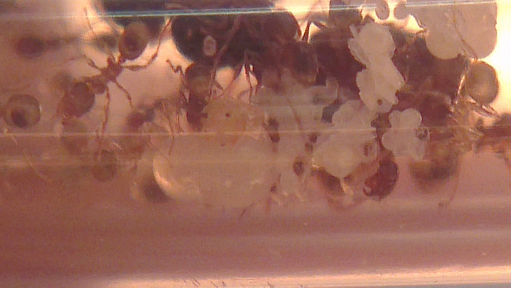Voilà la gyne et ses ouvrière dans le tube (désolé de la qualité catastrophique pour ainsi dire... Je n'ai que mon téléphone portable...)
