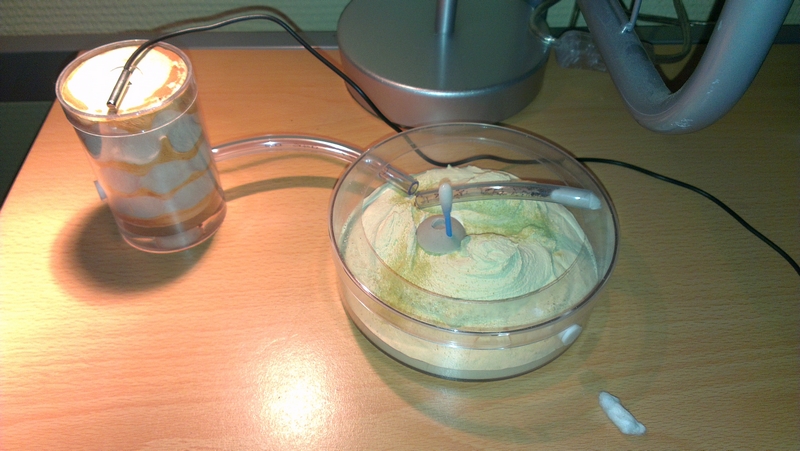 Il ne lui a pas fallu longtemps pour trouver l'entrée du nid, et depuis elle est restée dans le nid juste devant le tube reliant celui-ci à l'ADC. J'essaye de chauffer légèrement l'autre côté du "building" pour qu'elle s'y installe et que son observation soit facilitée. Pour l'instant je n'observe pas de résultat probant, mais je vais lui laisser le temps de choisir son endroit.