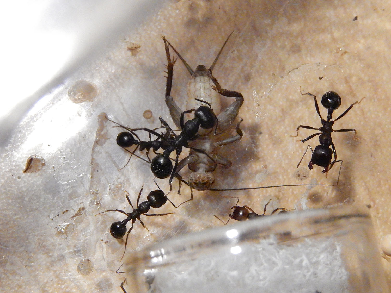 Malheureusement au bout de deux jours c'est l'hécatombe la fondation a perdu plus d'un tiers des individus et surtout les ouvrières minor, je crois que cela est dû au stress du déménagement, depuis plus de mortes à dénombrer et la gyne a repondu.