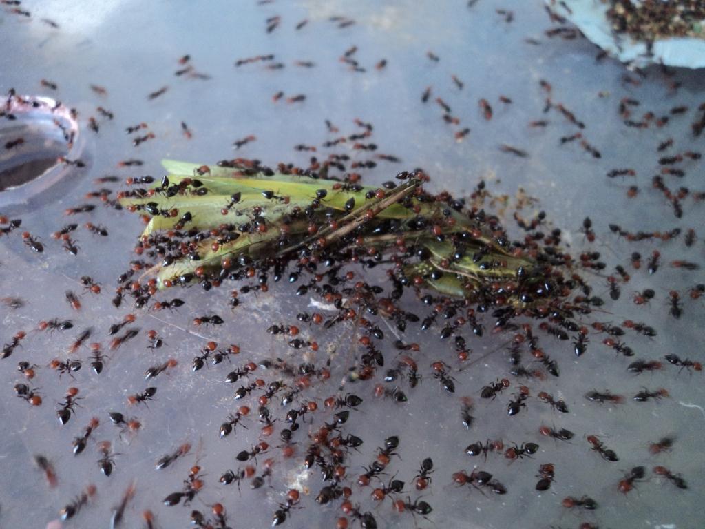 21 ouvrières et 14 larves, plus peut-être des œufs cachés en dessous, 2 naissance de prévues.