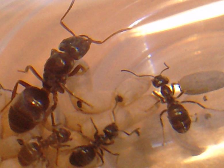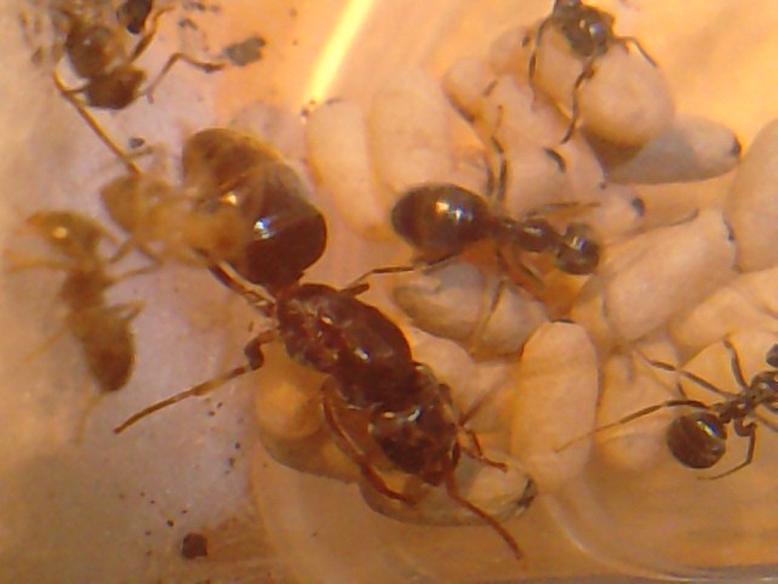 J'ai trouvé du couvain de Lasius sp noire, je donne environ 20 cocons et 2 ouvrières à la gyne.