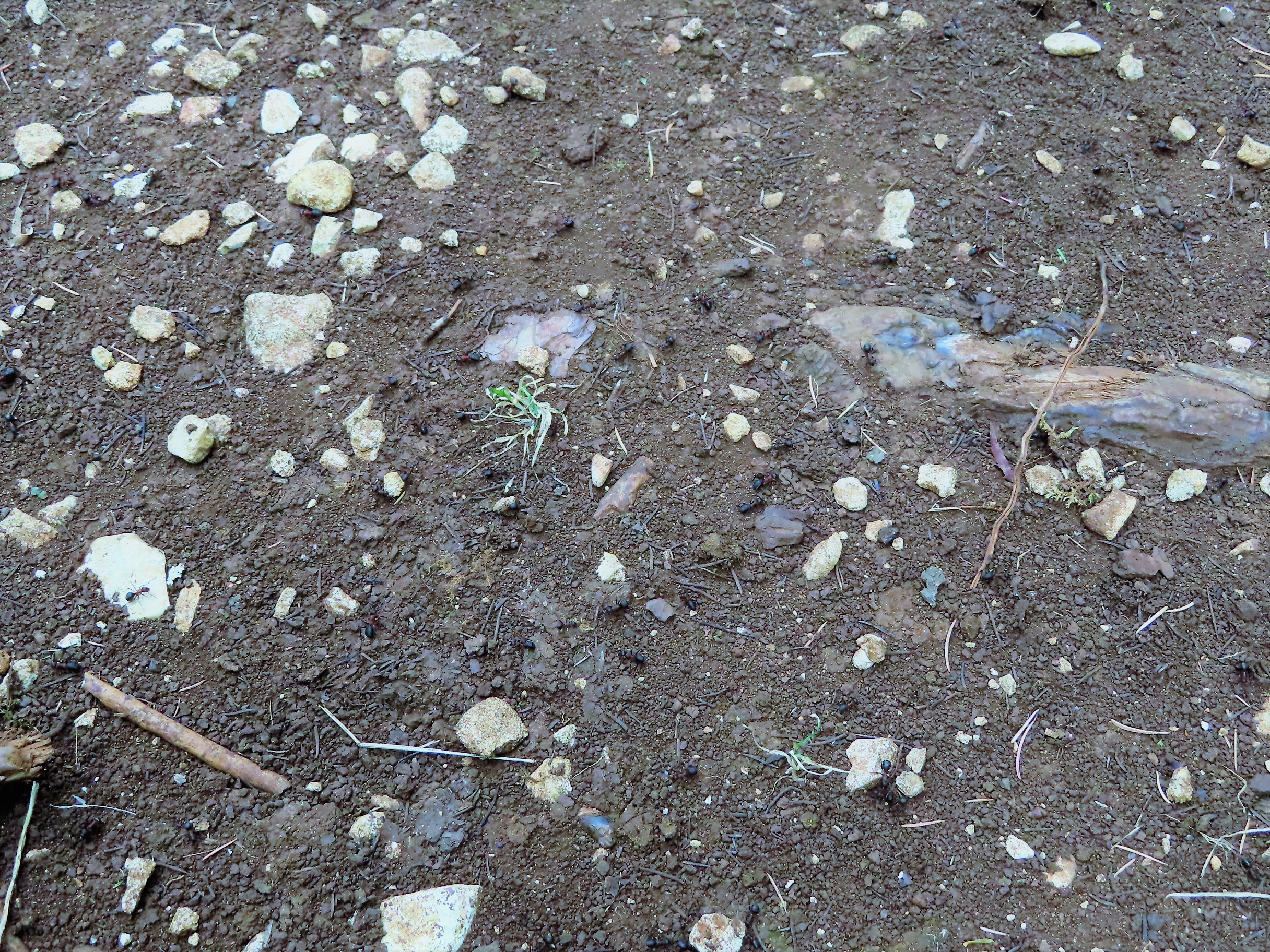 Plus on s'approche d'une grande fourmilière, plus l''allée forestière est maculée de fourmis rousses la traversant pour aller grimper aux cèdres se trouvant de l'autre côté. À ce moment-là il est très difficile de lever le pied afin d'éviter de les écraser. C'est ce qui explique que je ne me rends sur ce site qu'une ou deux fois par an pour ne pas faire un massacre, d'autant plus que la distance qui le sépare de mon domicile constitue une autre raison qui ne m'encourage pas à y monter trop souvent. Je ne possède pas de véhicule personnel, et c'est peut-être tant mieux pour ces fourmis.