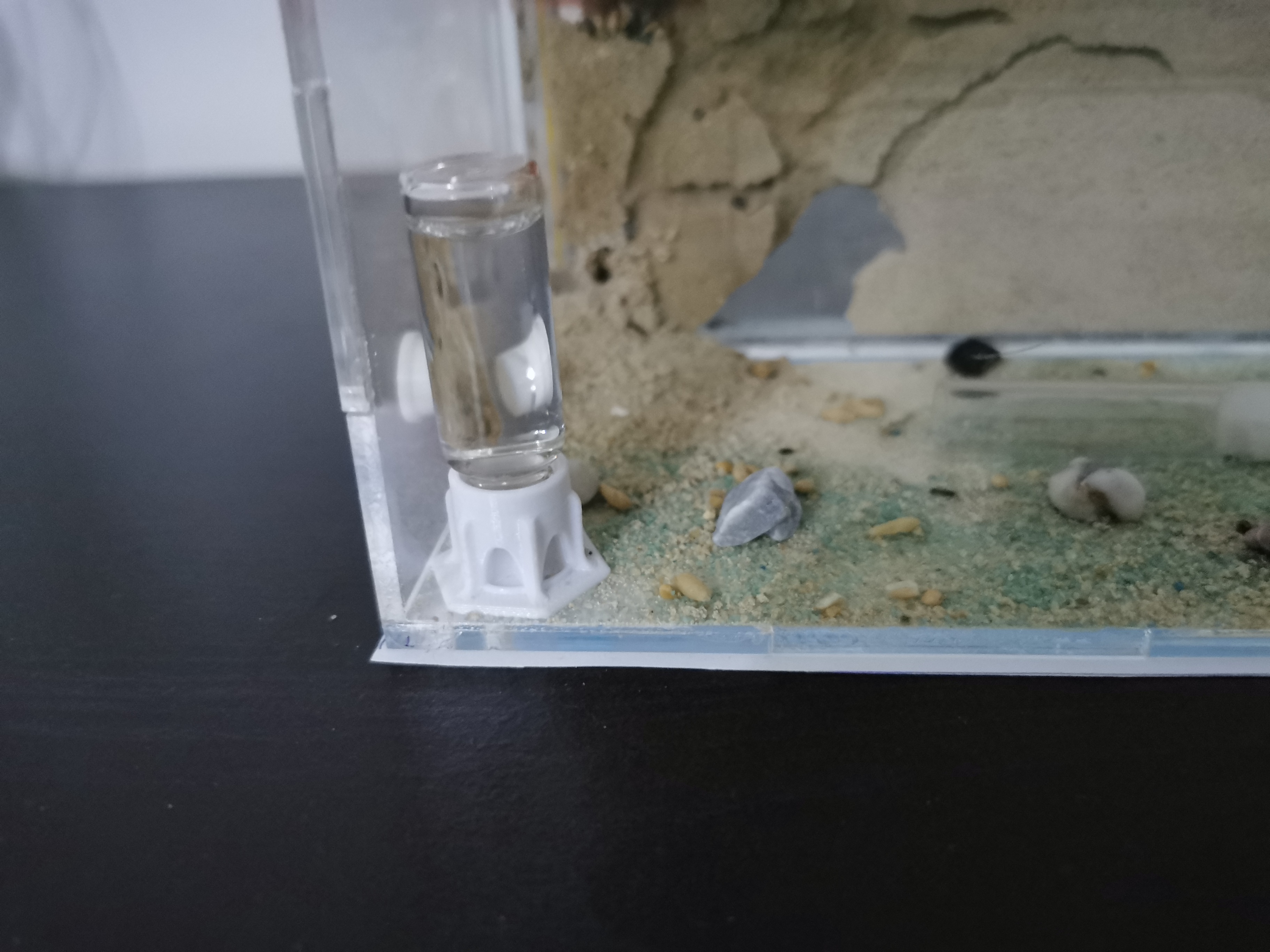 Pour le mini abreuvoir espagnol il est chez mes Lasius. Les Messor ont un abreuvoir 5ml espagnol, beaucoup plus adapté à cette espèce je trouve.