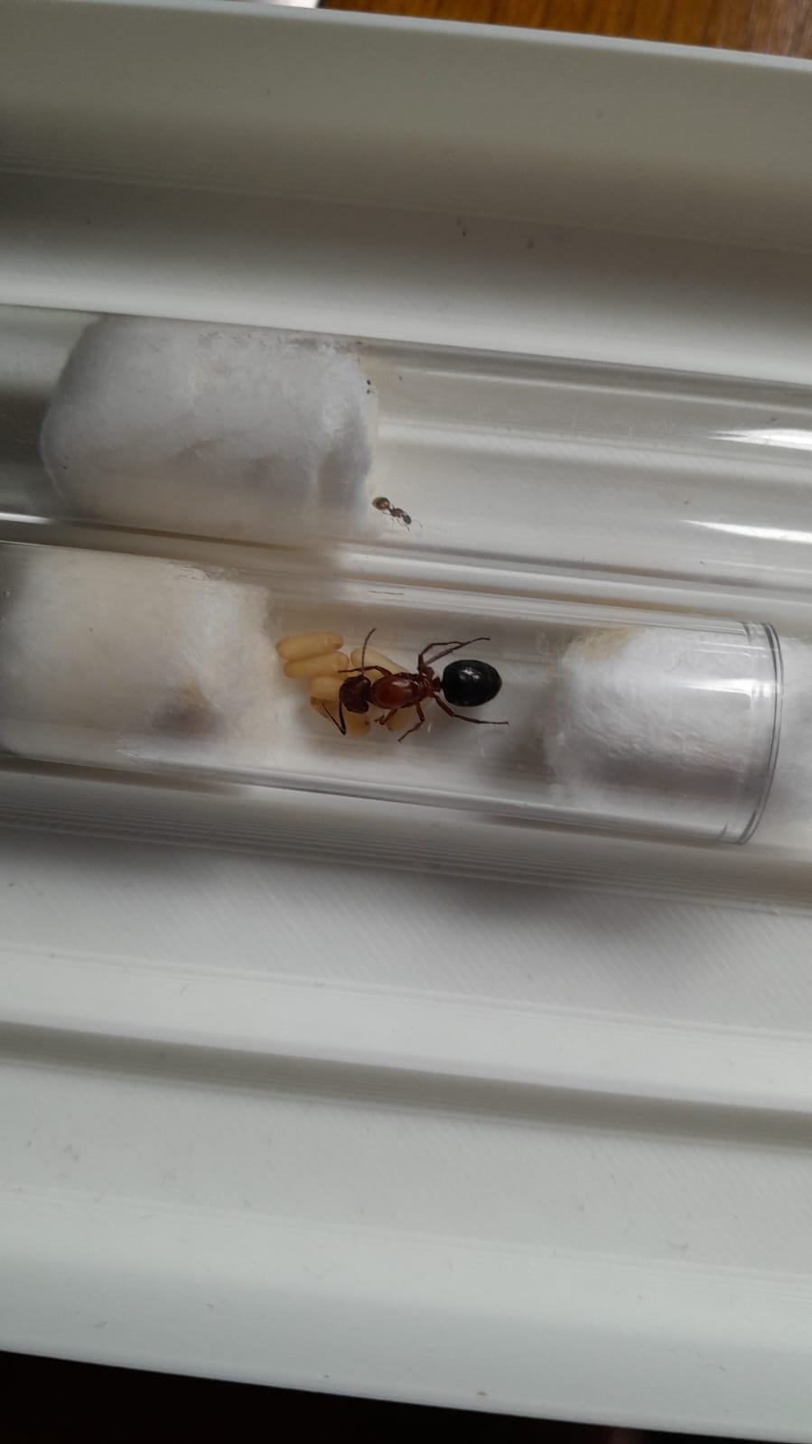 Myrmica rubra, je trouve toujours pas comment elles font pour avoir des colonies à plus de 30 reines, quand on sait que quand tu en mets deux elles se font tuer ensuite lors de l'arrivée des premières ouvrières (dites moi si je me trompe). Faut vraiment que je découvre pourquoi. En plus parfois quand tu les récupères elles tuent des