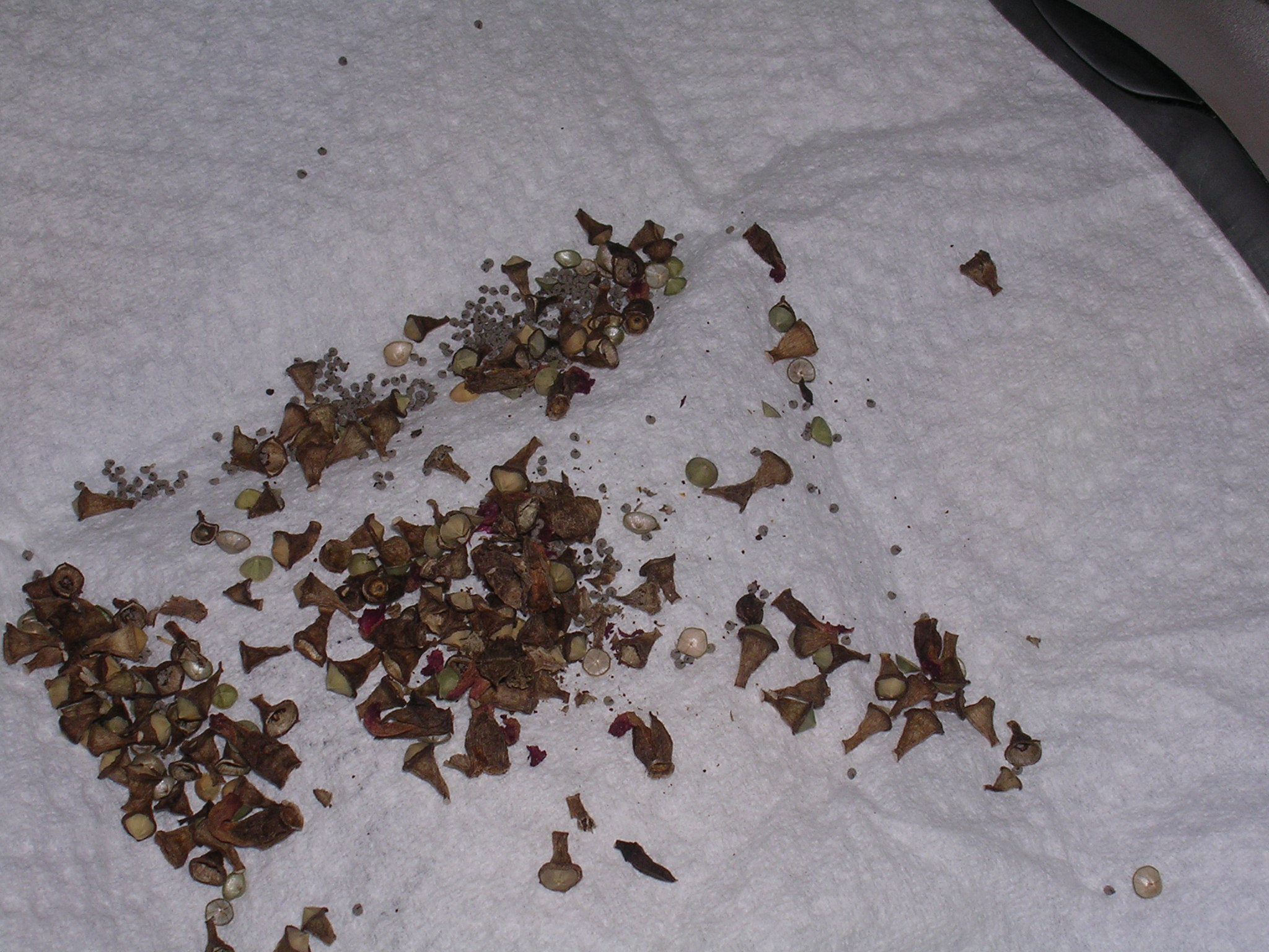 Aujourd'hui j'ai vu que je n'avais presque plus de graines d'Amaranthus, du coup j'ai un peu regardé ce que j'avais dans ma réserve à graines, et mis à part des graines de pissenlit (dont elles ne veulent pas...), de liane (guère plus de succès) et de vraiment grosses graines diverses, j'ai repéré des graines de pourpiers: