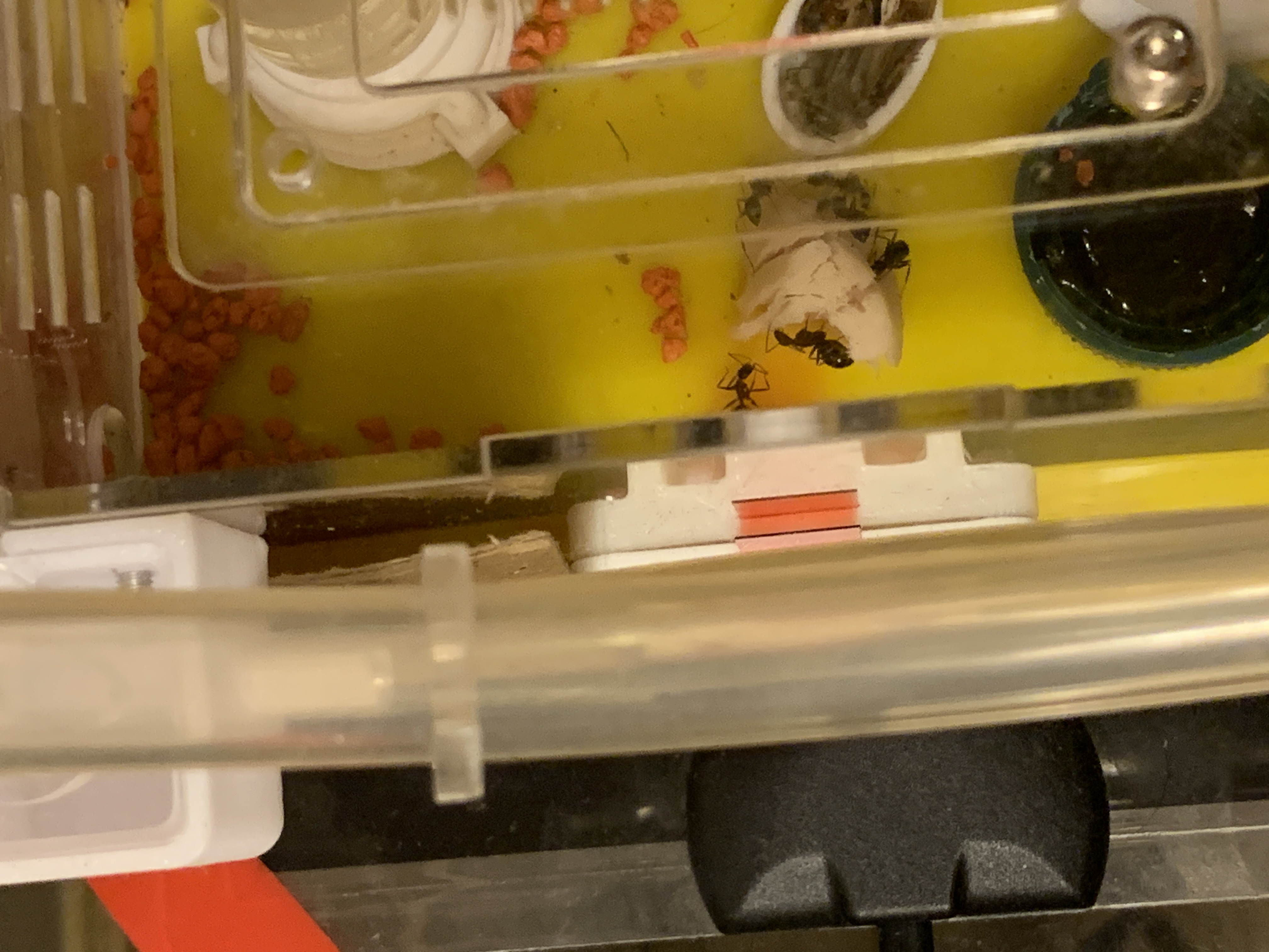 Pour les Camponotus barbaricus mon nid est en effet humidifié. Mais la reine, contrairement à mes autres espèces, n'a pas l'air intéressé. Sûrement, car elle est nourrie par les ouvrières. Ou alors, elle ne passe pas… mais j'en doute, parce qu'il me semble l'y avoir déjà vu.