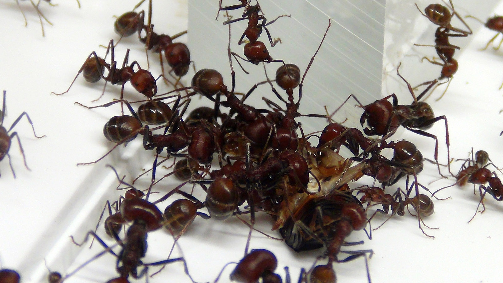 Après ses six années d'élevage, les trente nettoyages de fond en comble et sa multitude des gynes ailées, ma titanesque colonie de Messor cephalotes se porte toujours comme un charme. La reine ne semble pouvoir s’empêcher de pondre encore et encore... à tel point qu'il m'est mensuellement nécessaire d'occire nombre d'ouvrières ; les ouvrières les plus âgées, celles trainant tout aussi agglomérées que nonchalantes dans l'aire de chasse tout de plexiglas vêtue.