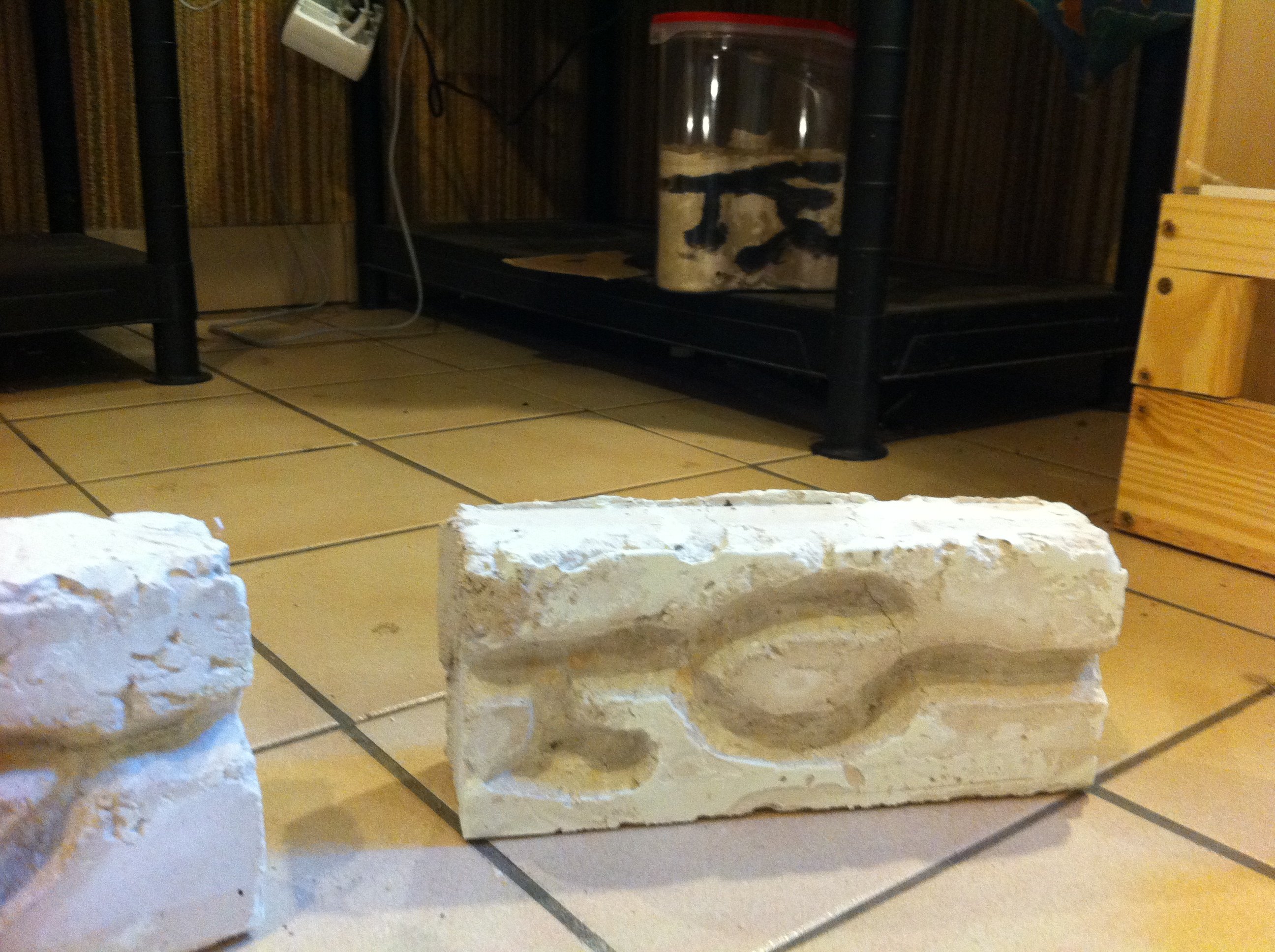 J'ai d'abord fait les blocs contenant le nid, ils ont été moulés dans de simples boîtes en carton, puis démoulés (retirés de la boîte) et là j'ai retiré la pâte à modeler qui a servi à dessiner les galeries.