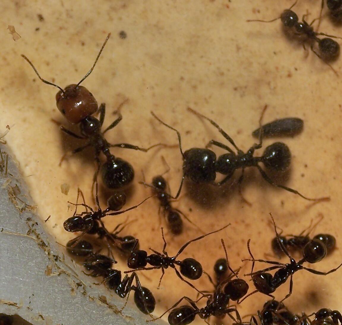 Chez mon parrain au Portugal il y a beaucoup de colonies de Crematogaster, Camponotus et Messor surtout barbarus et nombre d'entre elles avaient des têtes rouges, jaunes et noires évidement, juste un essaimage les trois semaines quand j'y suis allé.