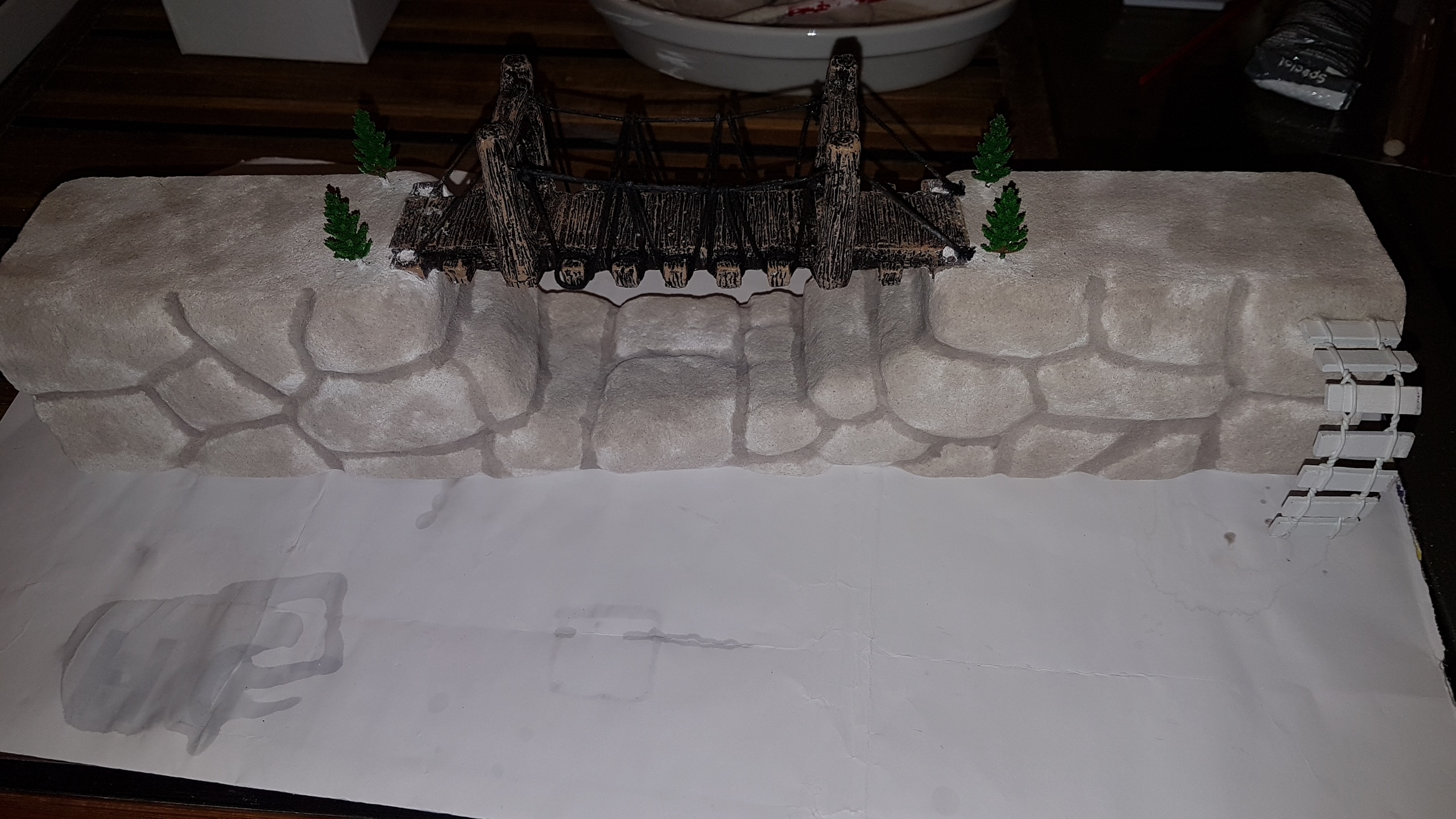 Pour le sol, j'ai simplement coulé au pinceau une couche de 2,3 mm de mortier colle sur la plaque de plexi après avoir mis mon décor, comme ça il sera démontable plus facilement.