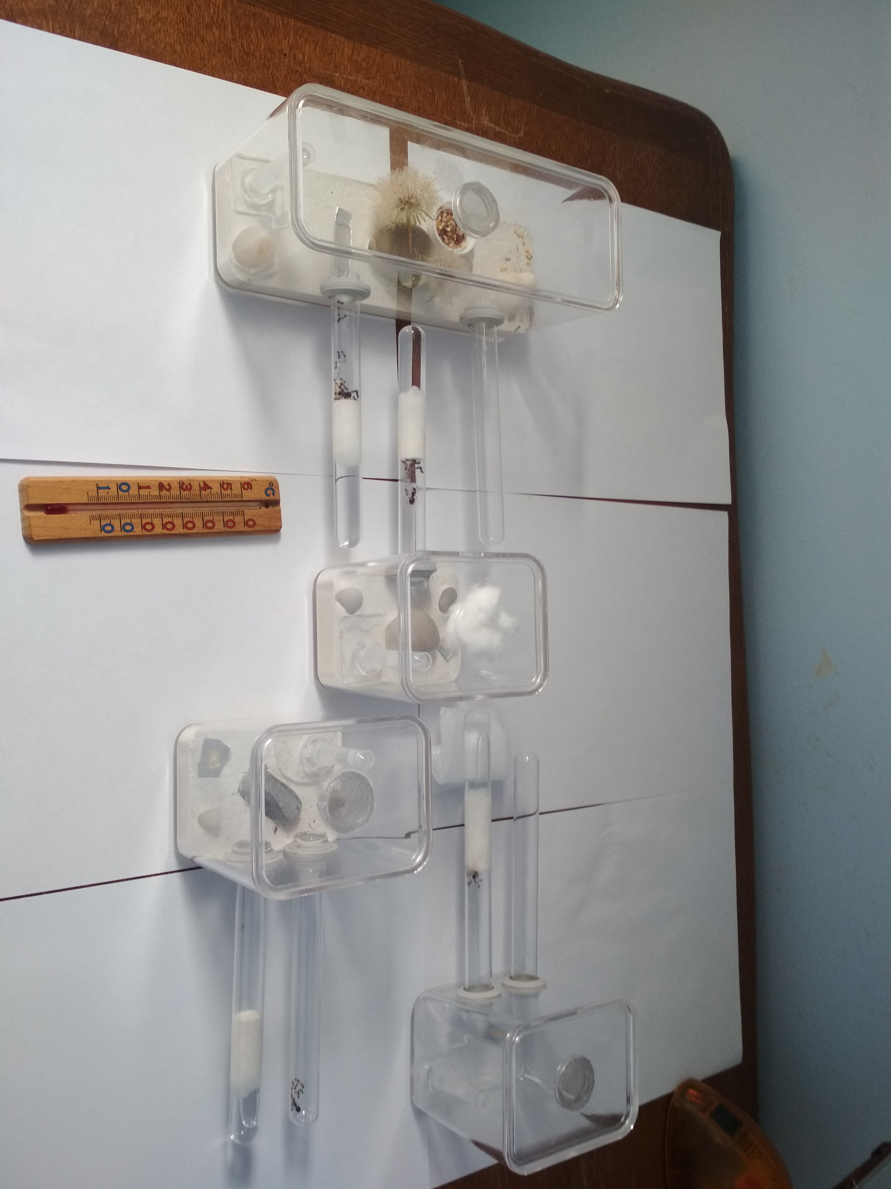 Le kit comprend 5 boîtes. 3 petites où il n'est pas possible de poser un tube standard. Une longue que tu peux voir sur ma photo, dans celle-ci tu peux poser un ou plusieurs tubes, je l'avais fait au début pour mes Messor wasmanni. La dernière boîte est une grande carrée qui contient toute les autres donc 2 fois la taille de la longue, évidemment il est aussi possible de poser des tubes dedans.