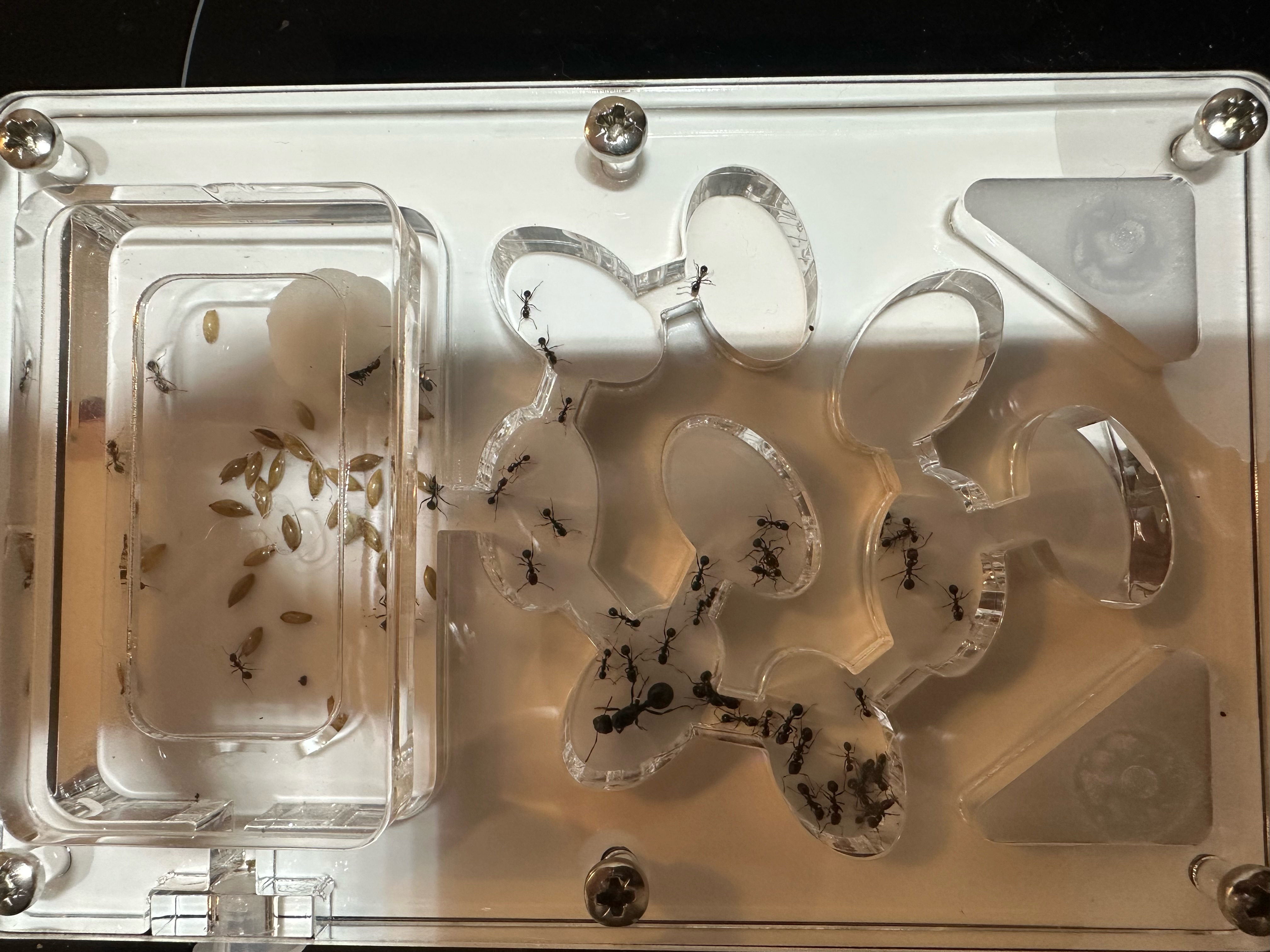 J'ai simplement suivi le guide d'élevage reçu avec le nid qui disait qu'il fallait 10-15 ouvrières et j'en ai le double pour moi c'était bon...