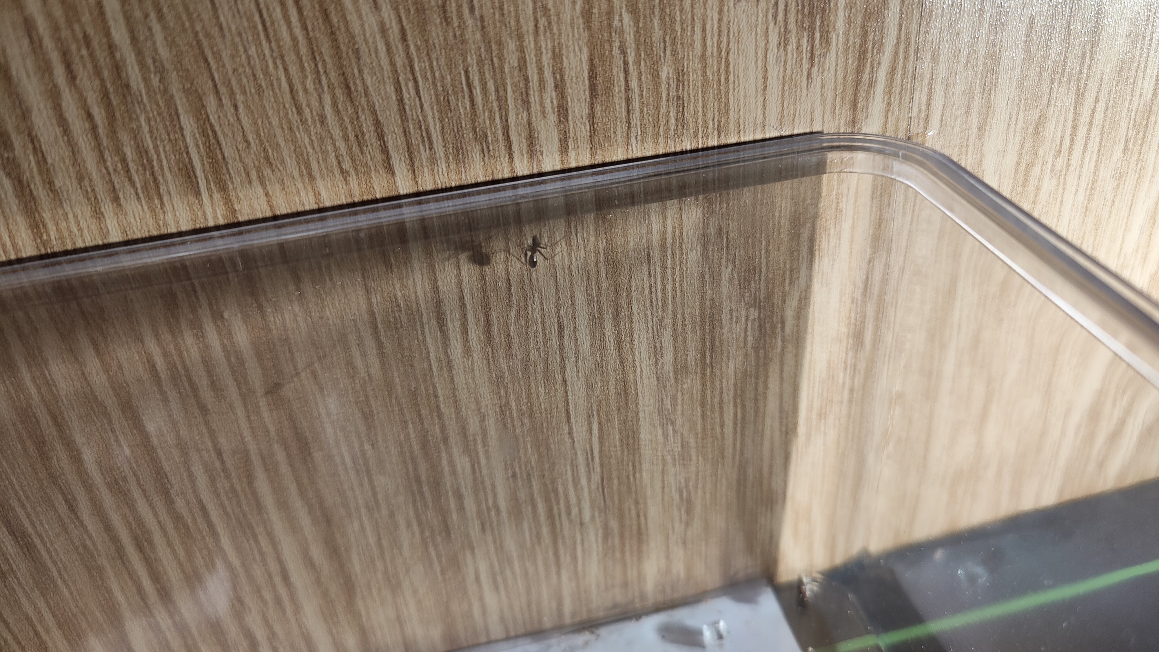 Ah oui, il y a quelques jours, j'ai ouvert le couvercle de l'ADC, et une fourmi en a profité pour grimper sur le fond de l'armoire. Bon rien de bien grave, je l'ai rattrapée immédiatement et remise dans l'ADC. Mais le plus curieux, c'est qu'ensuite, elle a attendu très longtemps accroché à la paroi de l'ADC juste en dessous du couvercle. Faut croire qu'elle a pris goût à la liberté.