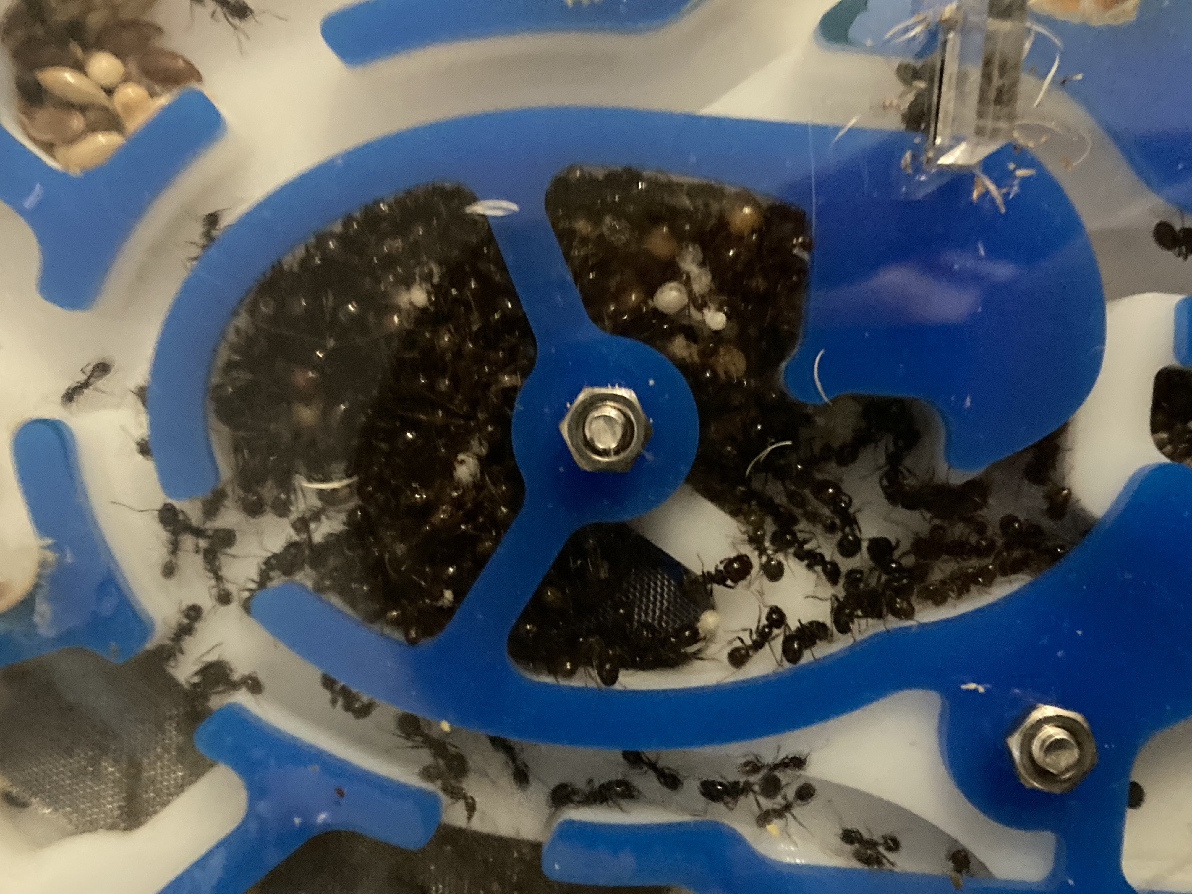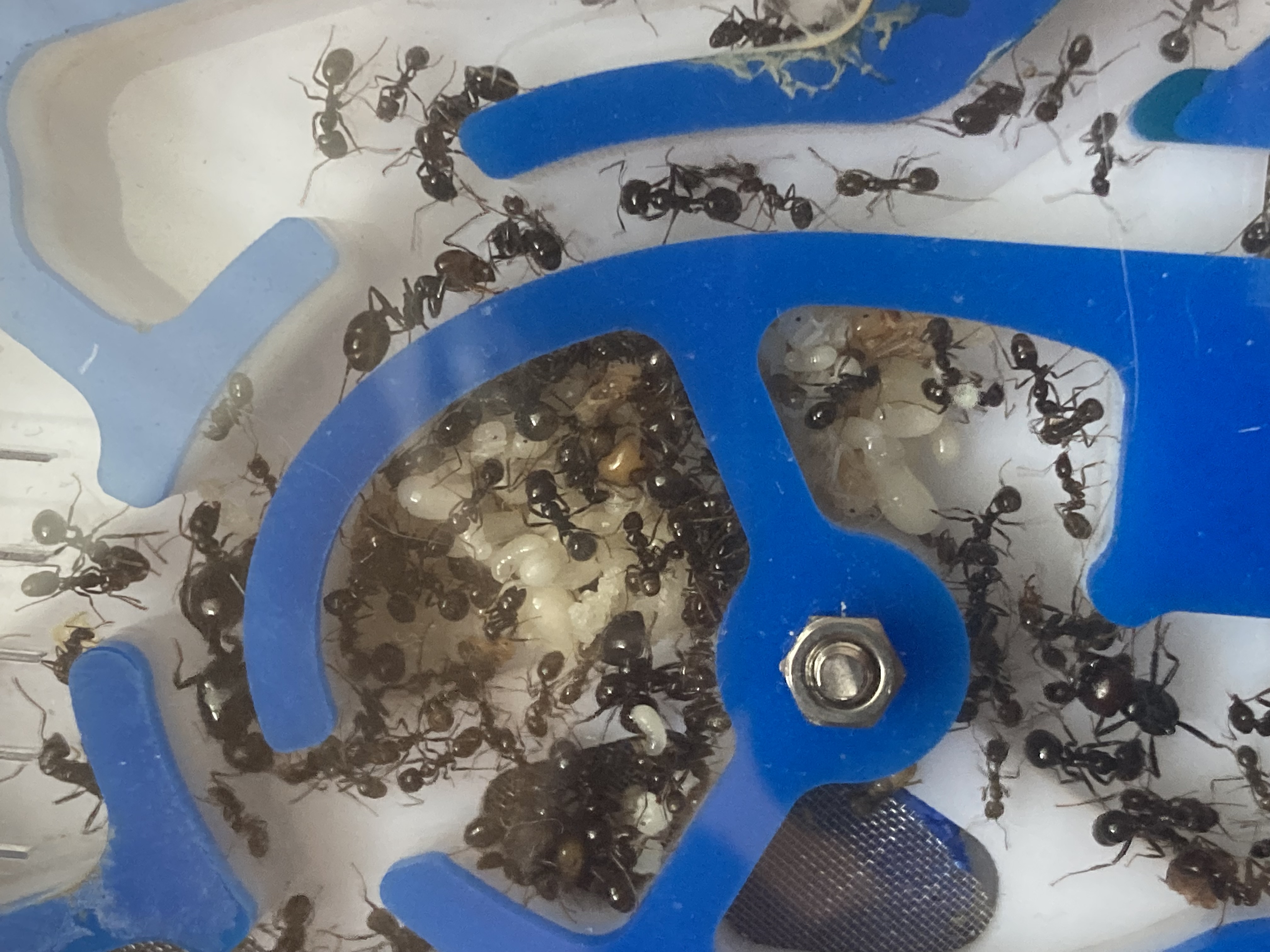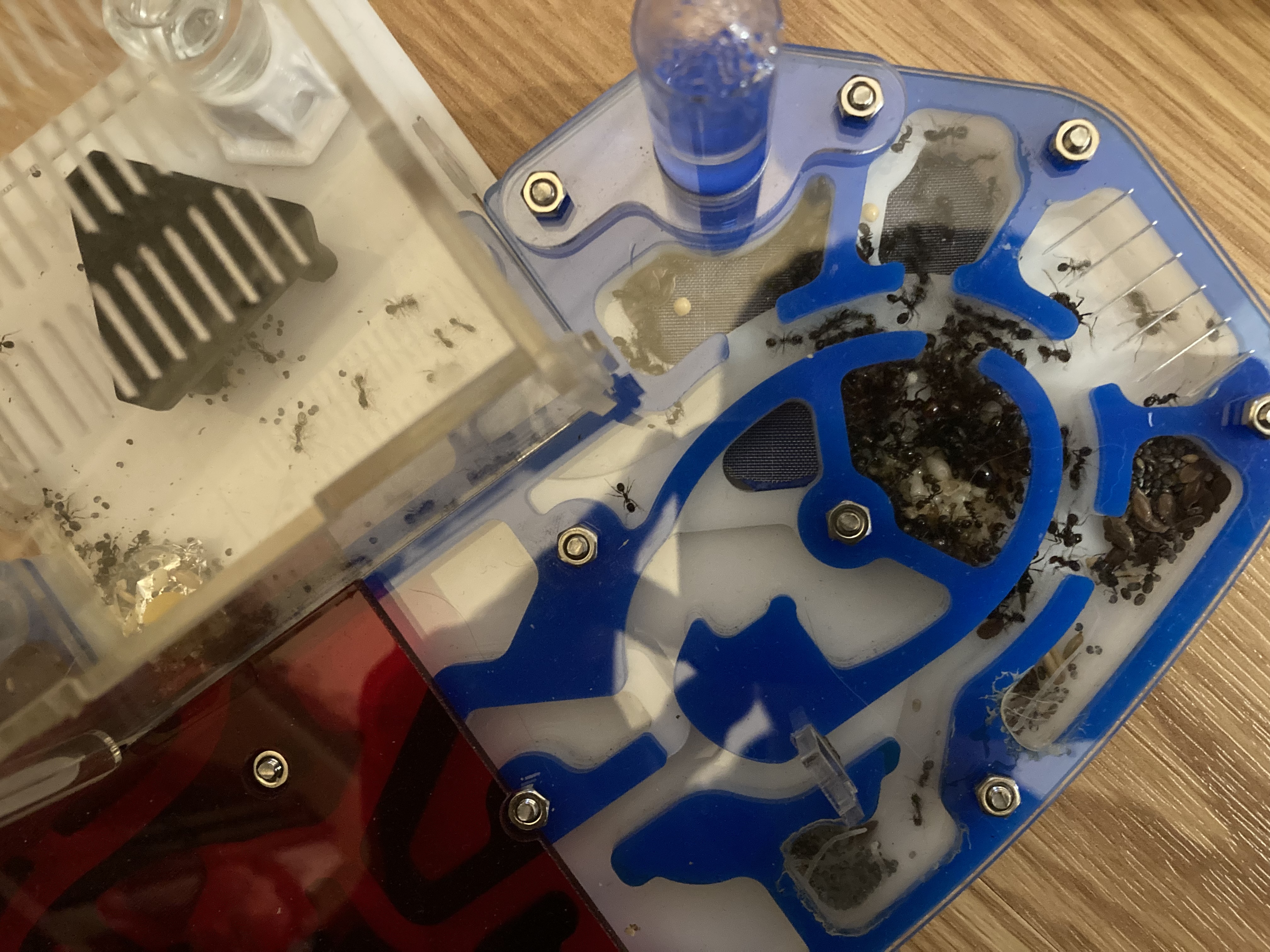 Côté Messor ça se développe toujours beaucoup ! Plein de couvain, grenier conséquent, plein de média et 3 nouveaux majors ce qui fait :