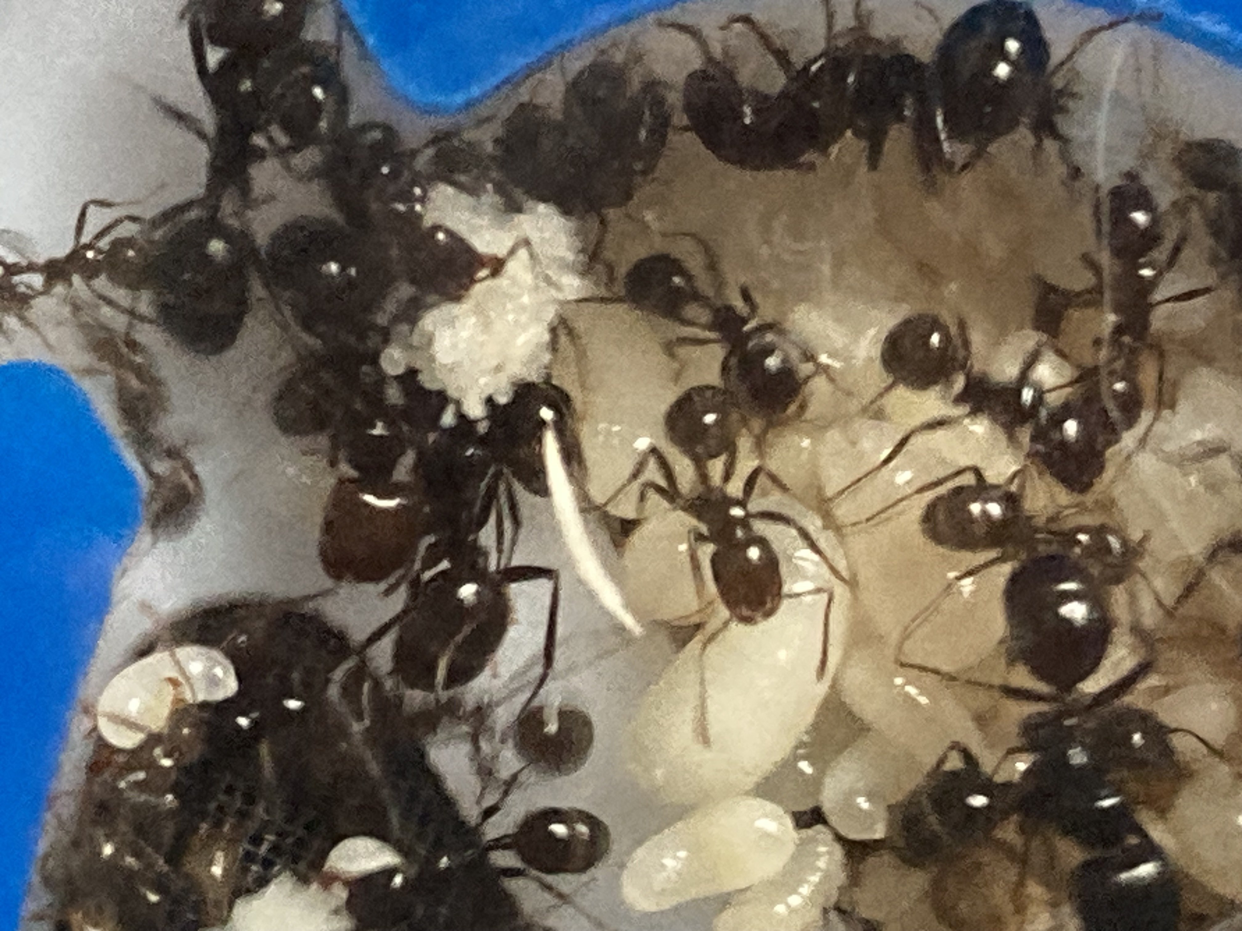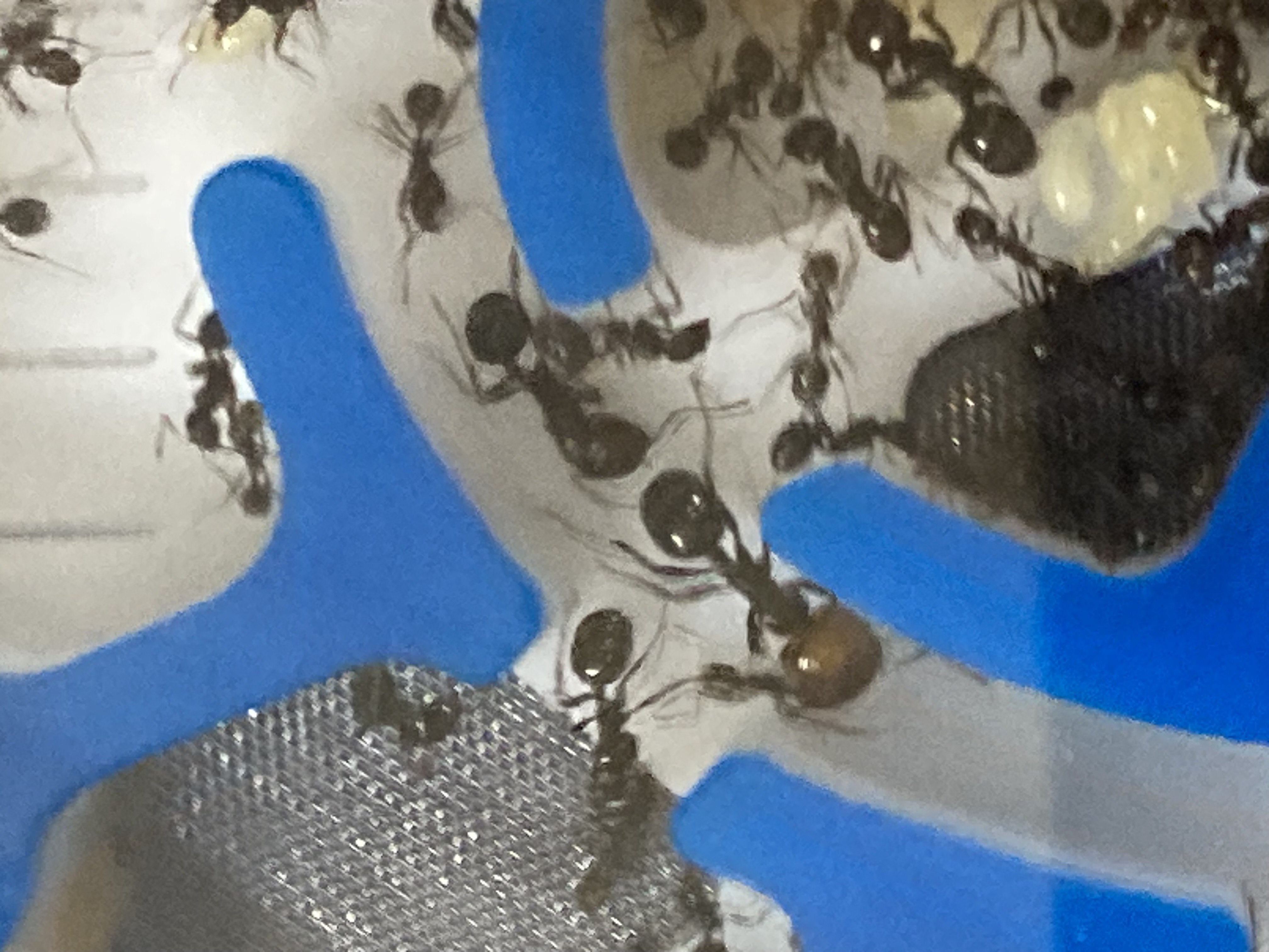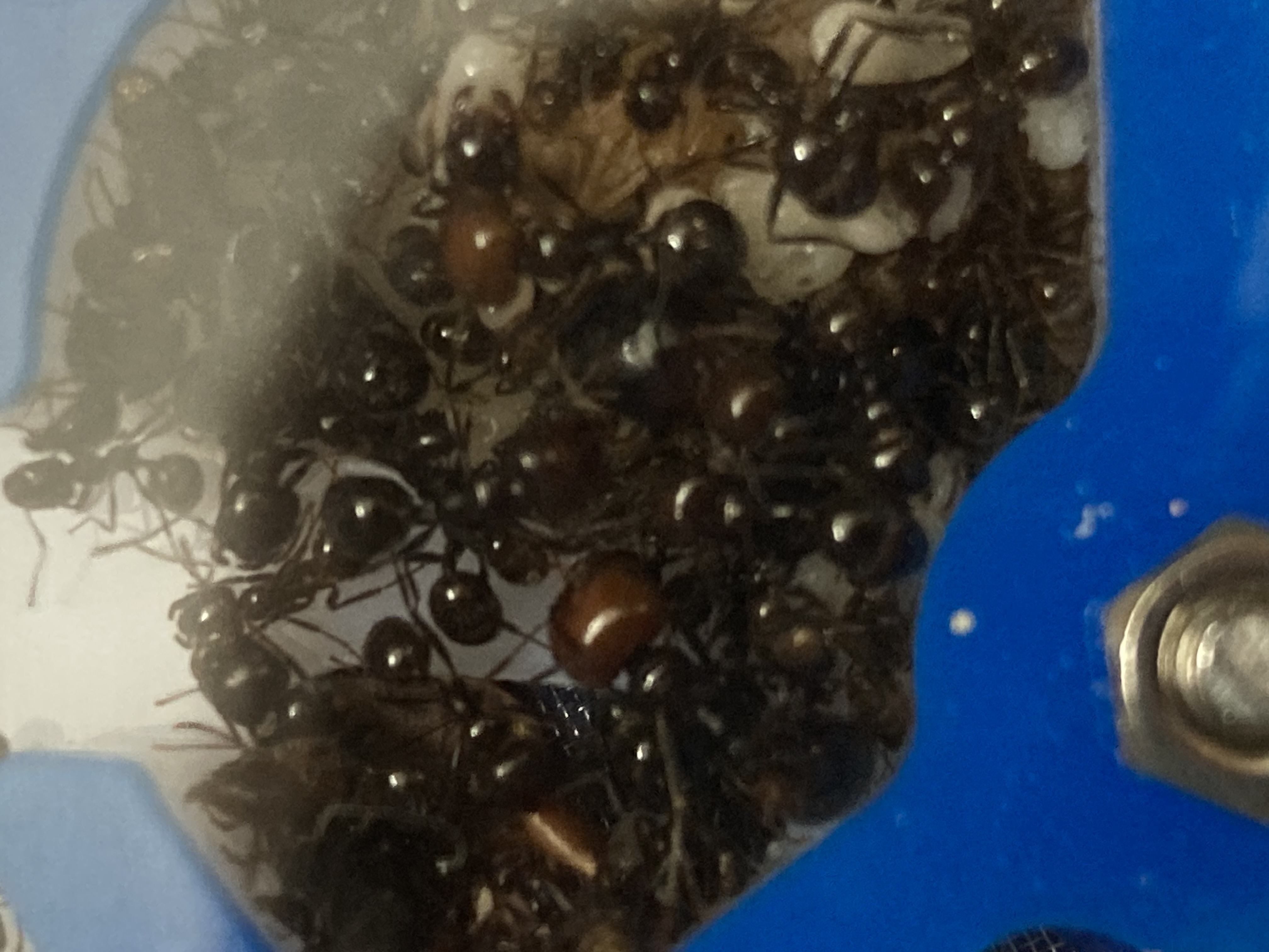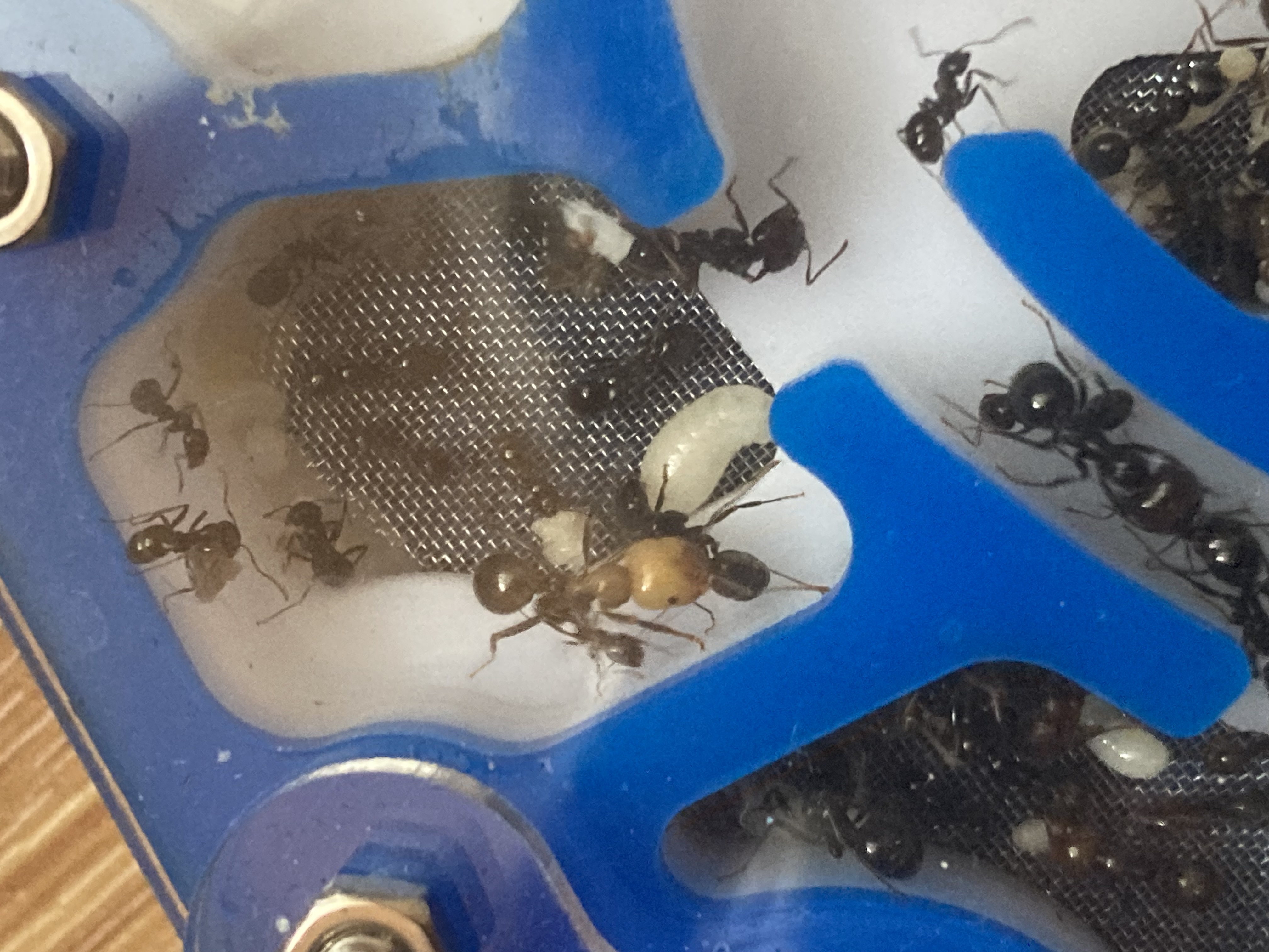 Côté Messor ça se développe toujours beaucoup ! Plein de couvain, grenier conséquent, plein de média et 3 nouveaux majors ce qui fait :