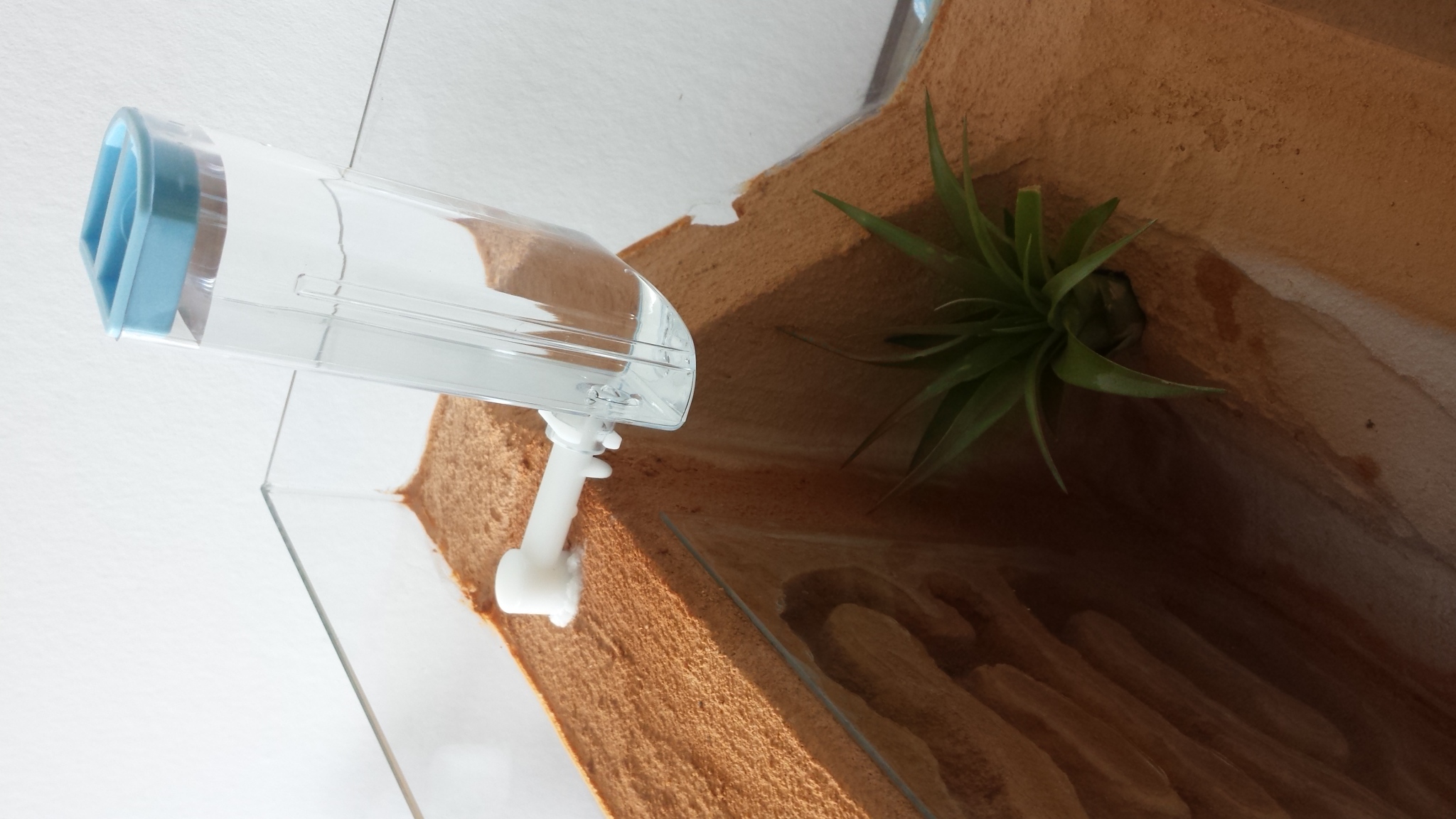 Pour l'humidification, je suis toujours en test. Voilà mon dernier essai avec un abreuvoir à rongeur.