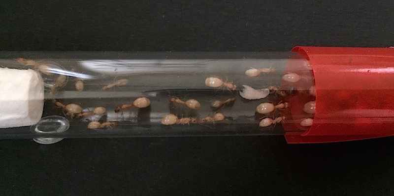 Les fourmis sont toujours dans un tube à essai, disposé dans une (bien trop) grande ADV.