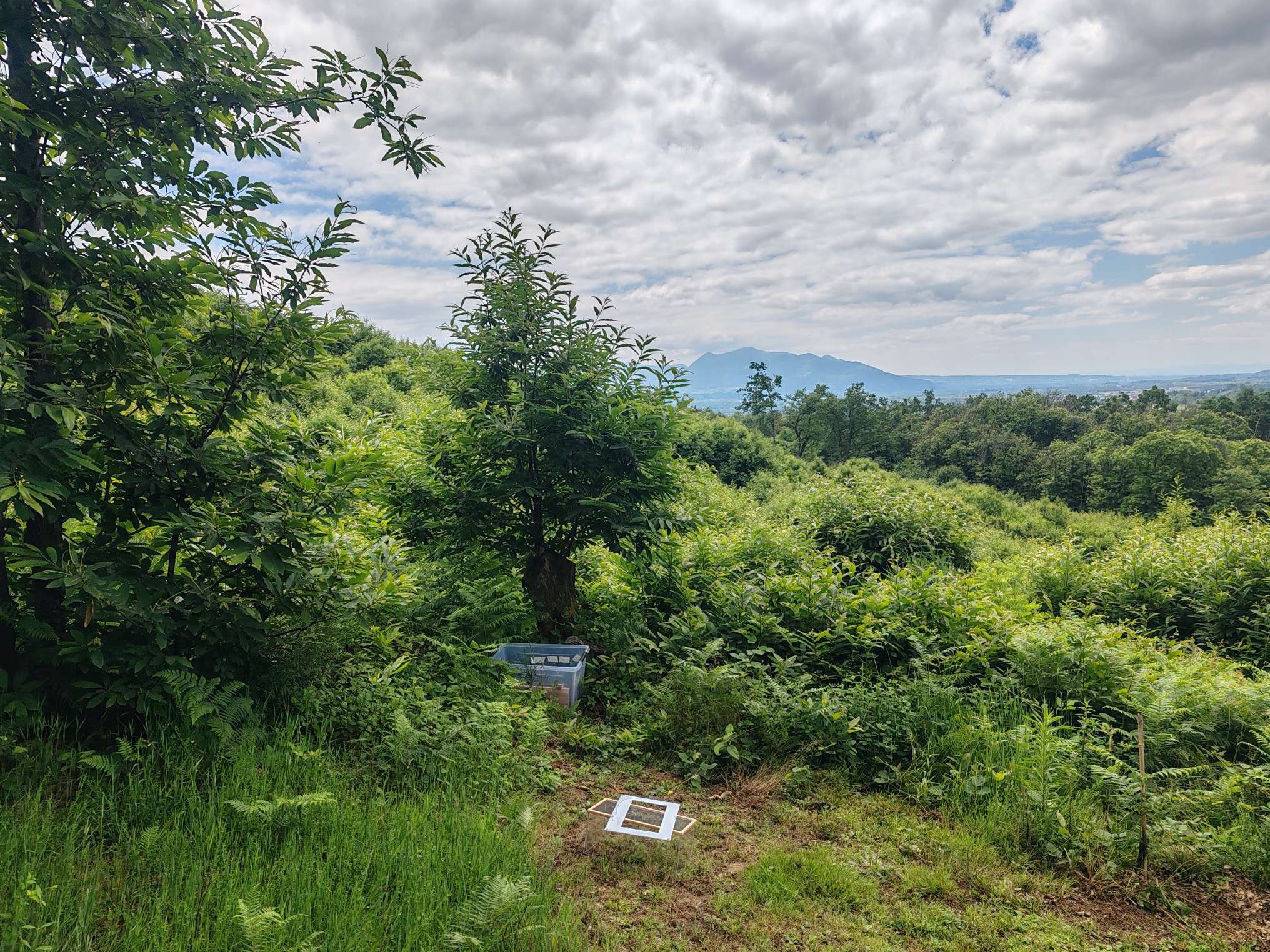 Camponotus vagus va donc s'arrêter bientôt. Il y a deux jours j'ai déposé la totalité du dispositif dans le fond du jardin de mon beau-frère. C'est un cadre magnifique avec vue sur le Vercors. Le