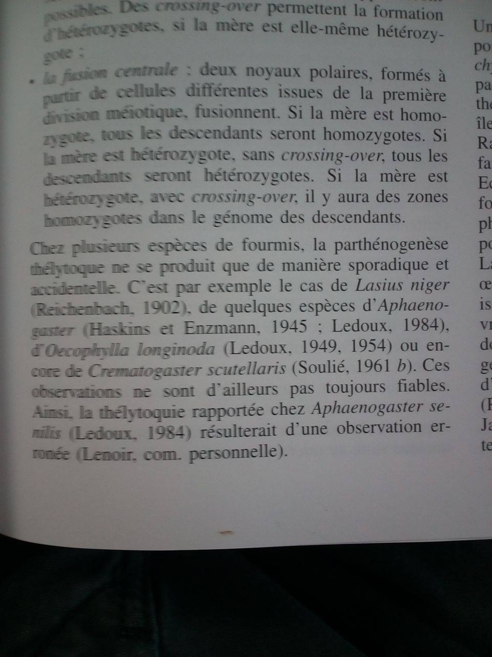 D'accord, merci pour ta réponse. Pour l'instant, elle bouge encore très légèrement donc je vais la laisser un peu voir si elle sort de son coma. Je l'enlèverais si ce n'est pas le cas. Ça t’ennuierait de m'envoyer les écrits scientifiques, ça m'intéresse.fourmi1997 a écrit :D'après mes lectures scientifiques non, ou pas avant un bon bout de temps. De nombreuses expériences ont été faite par les myrmécologues sur ce sujet et la reine possède bien un pouvoir d'inhibition sur la ponte des ouvrières, et si je dis pas de bêtises ils ont aussi essayé en mettant un cadavre de reine ou de morceaux de reine avec des ouvrières et cela inhibait aussi la ponte !Comelechaud a écrit :C'est ce que je me disais mais en même temps je me demande s'il elle n’émet pas une odeur de "mort" qui peut faire comprendre aux ouvrières que la reine est bien morte et qu'il faut la remplacer..?Je te conseille d'enlever la reine car celle-ci émet des hormones inhibant la ponte des ouvrières, même pendant un certain temps après sa mort.