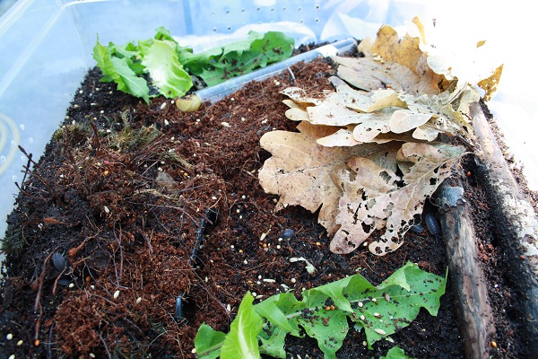 Depuis le départ j'hésite à la garder, sachant qu'une fondation me suffit déjà amplement, et qu'en plus ce que je souhaiterais vraiment comme fourmis ce sont des Messor barbarus. J'étais à deux doigts de déposer le tube dans le jardin hier, et puis finalement... : dans l'après midi j'avais nettoyé une "petite" box qui me servait à élever des escargots, et qui est désormais vide (vide d'escargot en tout cas ! il y a beaucoup de cloportes à l'intérieur, qui prospèrent et se multiplient). Alors j'ai décidé d'y placer le tube à essai, pour voir ce qu'allaient faire les fourmis.