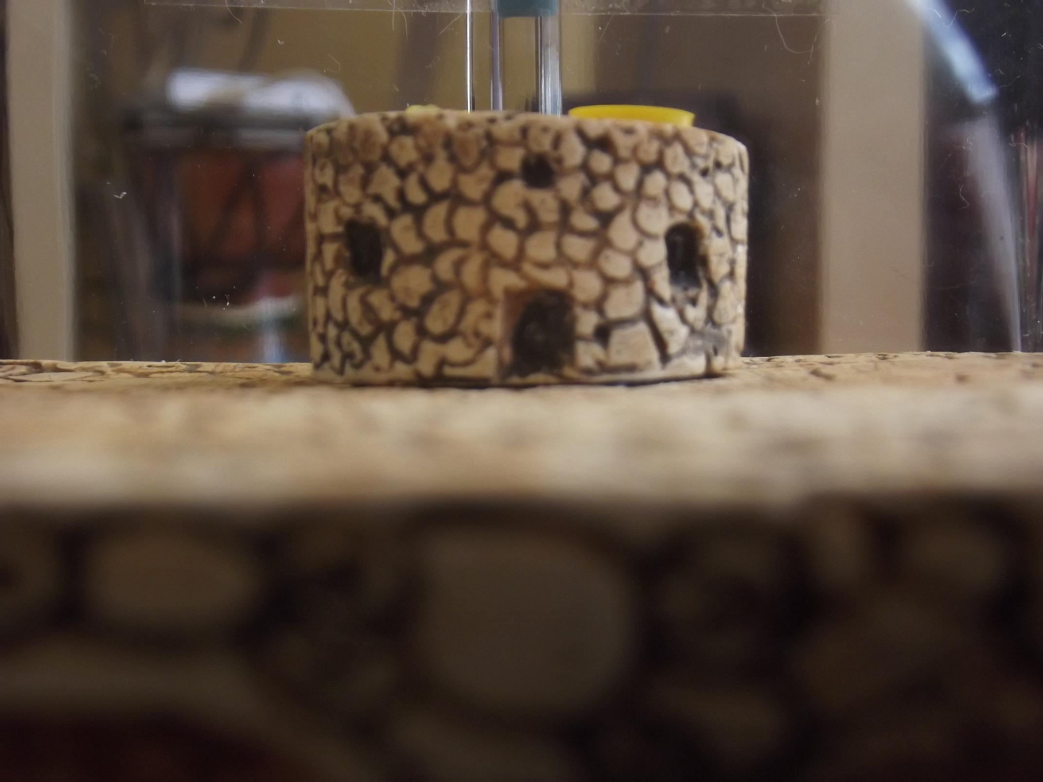 Je voulais faire un genre de mur en façade (le genre de pierre du contour de mon dernier nid) , donc sur les 3 faces habitables. Mais, manquant de place pour la décoration (c'est à dire pour dessiner à la drem*l les contours des pierres, que je voulais faire rectangulaires (moellon) ) , je me suis donc lancé sur le style de pierre arrondie, la décoration que je maitrise le mieux...cela n'a rien d'innovant car cette décoration apparaît sur chacun de mes derniers nids...