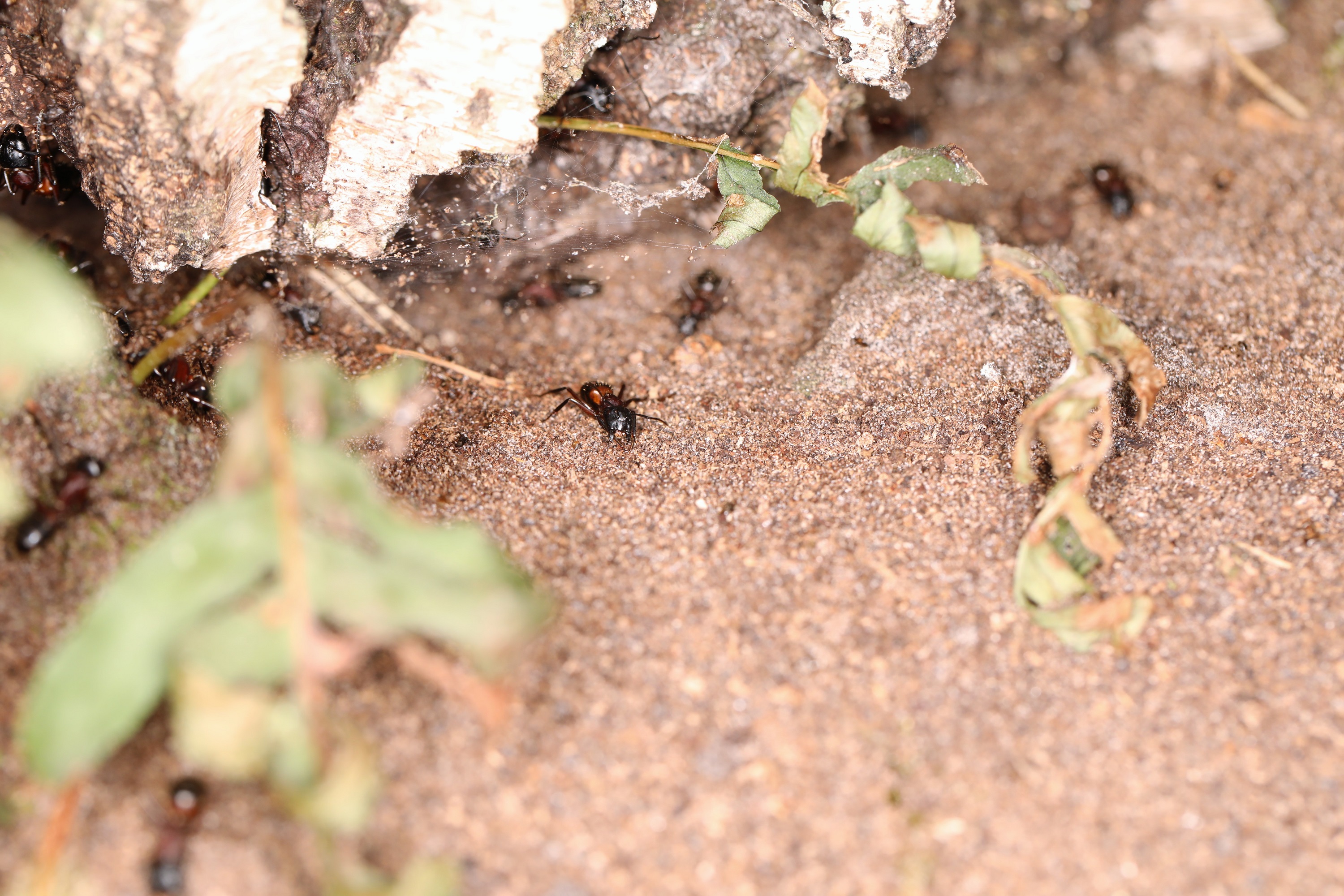 nid - dôme de brindilles, à des dizaines de mètres alentour (merci Ours) :