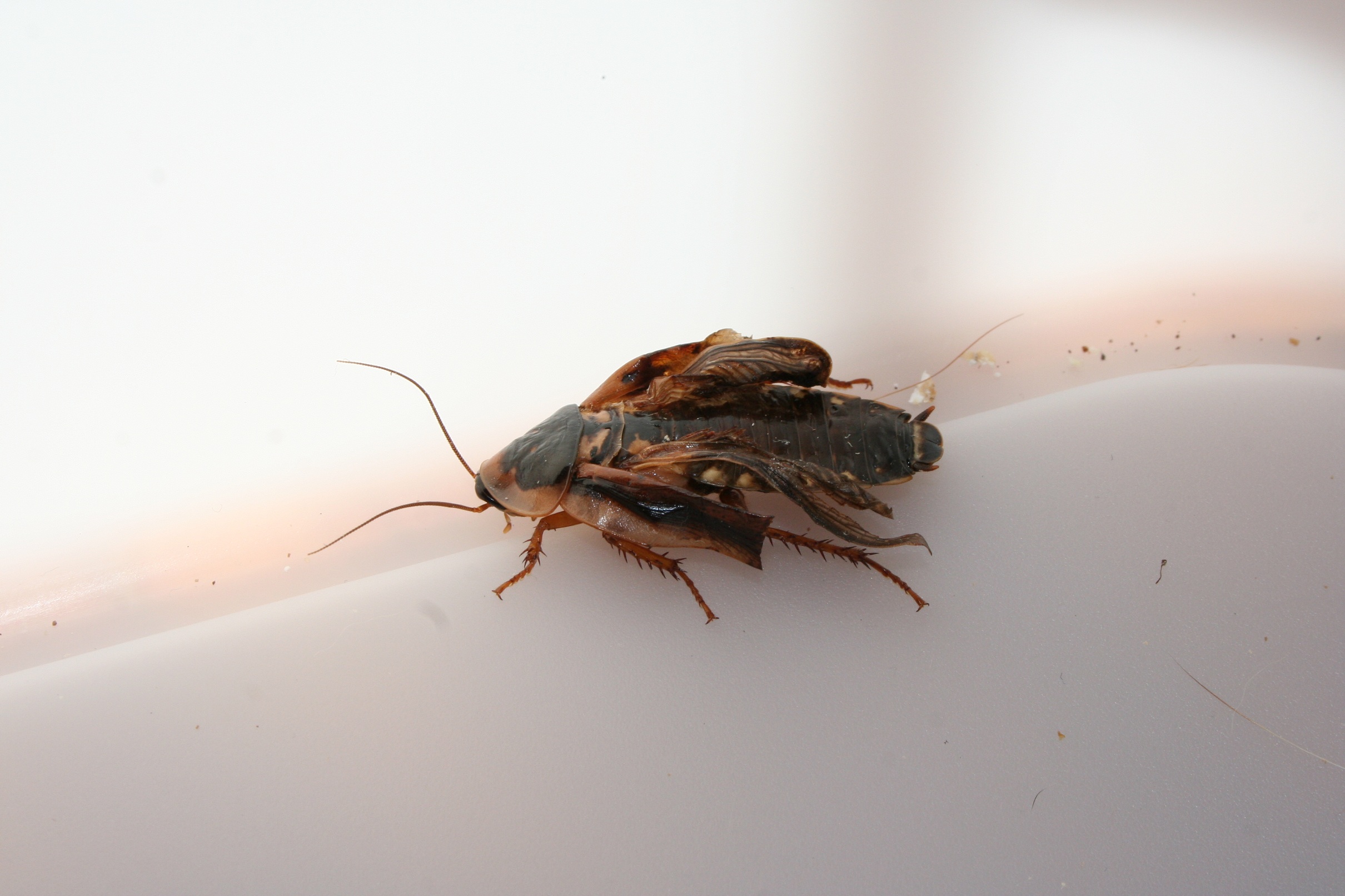 Après la mue, les blattes sont toutes blanches et cela dure quelques heures. C'est une phase critique pour les blattes car leur carapace est alors toute molle et leur pattes très fragiles: