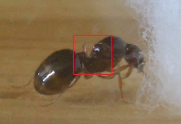 Couleur : brune dans l'ensemble, pattes ambrées, rayures ambrées sur l'abdomen