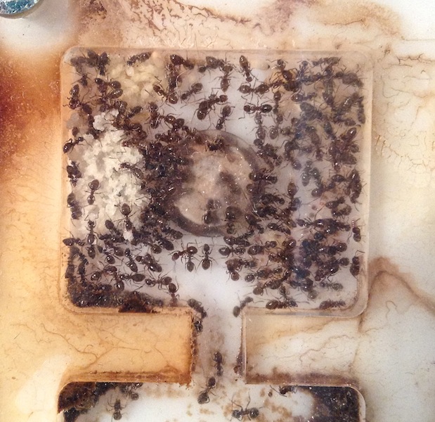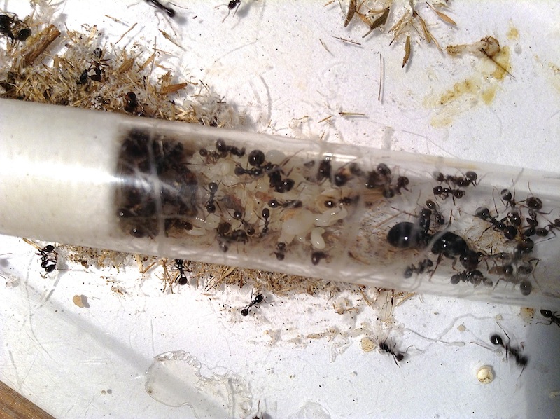 Une colonie de Lasius niger dont la reine fut recueillie en juillet 2011, elle a donc 2 ans