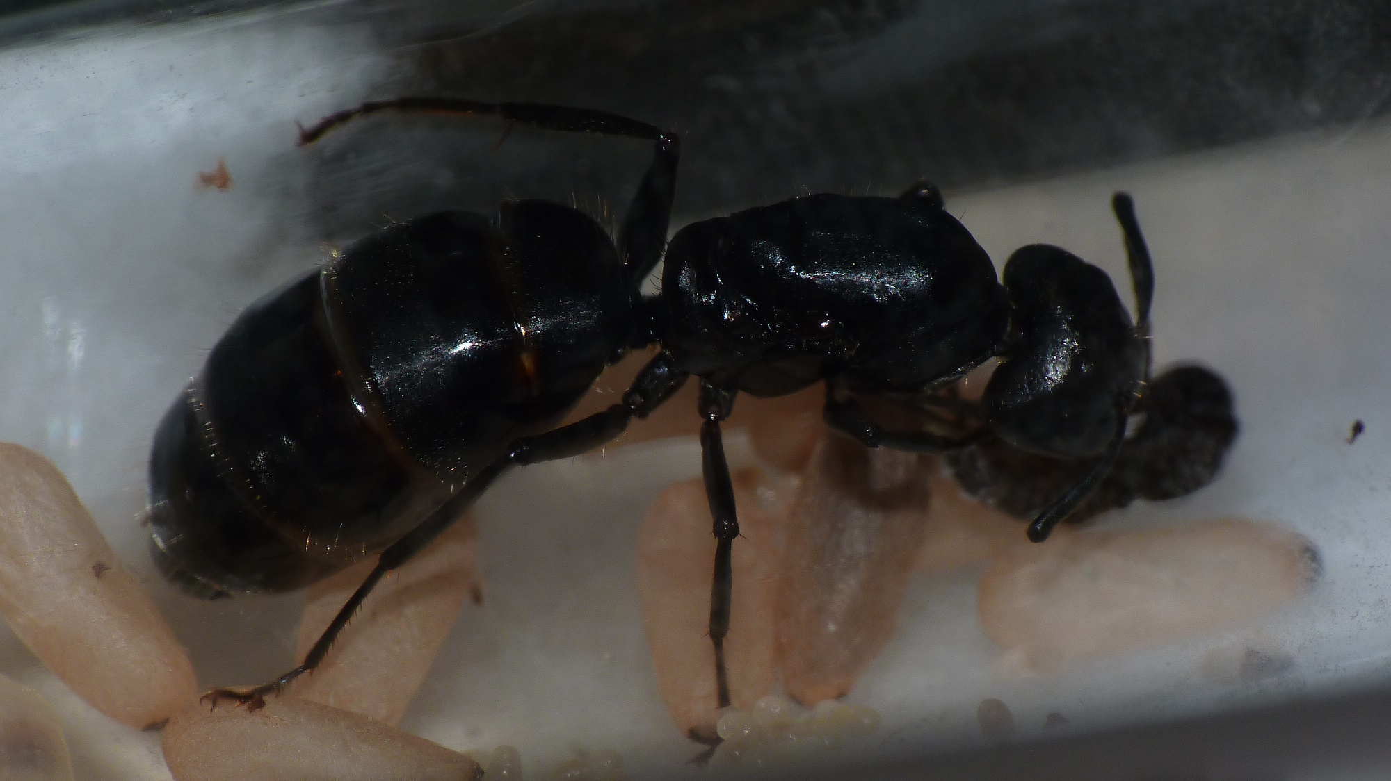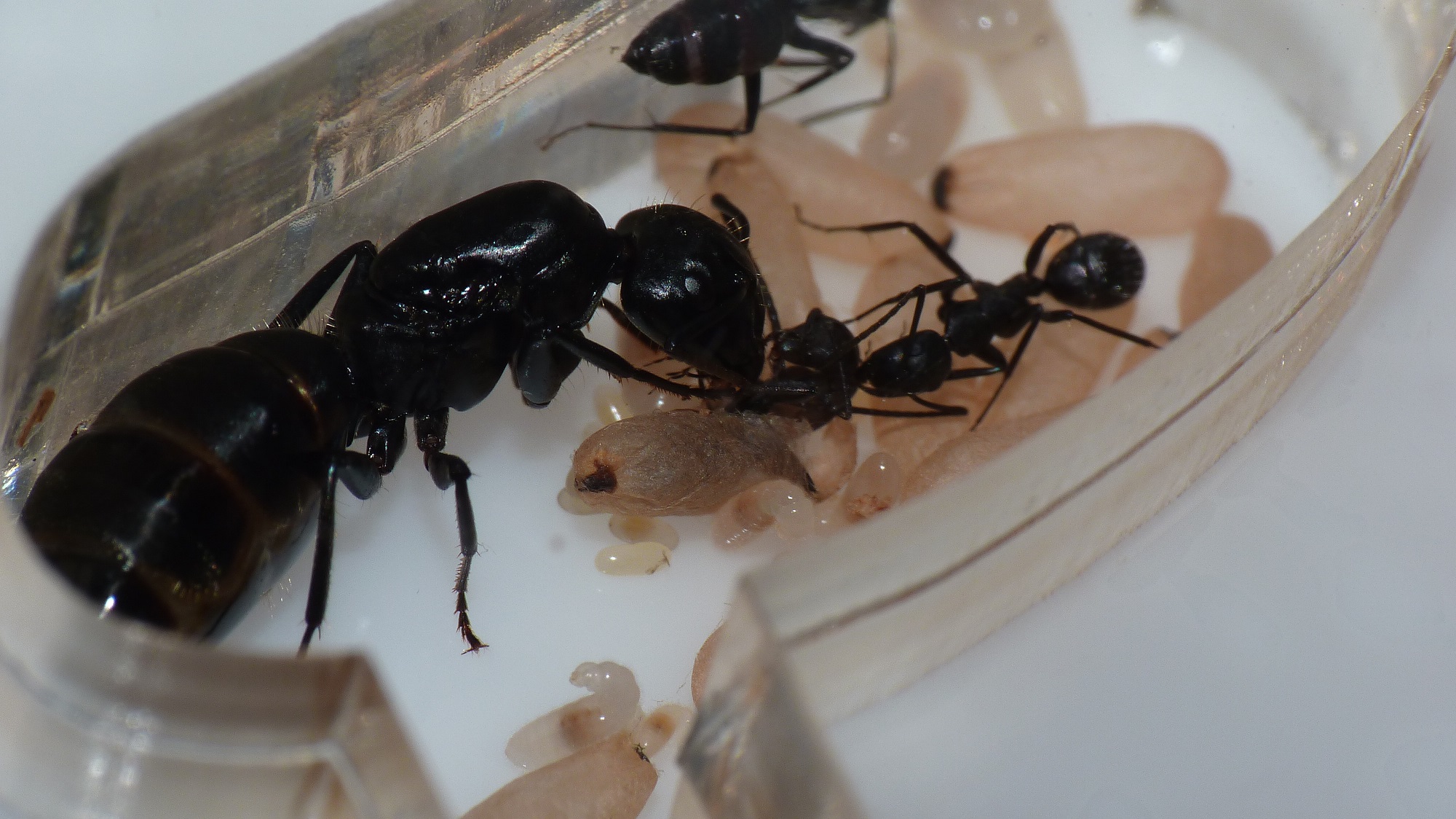 On s'occupe de la nymphe sous le regard attentif de la reine !, [Blog] Camponotus vagus