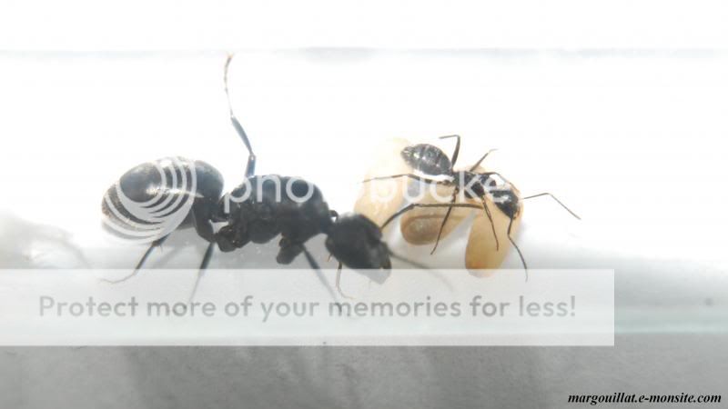 Voilà le suivi de ma fondation de Camponotus vagus reçue il y a quelques jours (échangée contre une fondation de C. cruentatus). Il y a 3 cocons, une larve et quelques œufs, ainsi qu'une ouvrière.