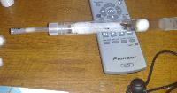 J’ai mis un réservoir de liquide sucré et vitaminé relié au module par le trou d’alimentation. Cette petite réserve de 3 ml est constitué d’un petit réservoir de type labo, coupé a sa base, relié à un morceau de tuyau et bouché avec un coton. Ce système a l’air de marcher un temps mais le coton fini par devenir sec car le liquide sucré ne semble pas descendre suffisamment.