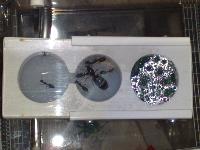 L’observation n’est pas très aisée car le module et l’ADC sont en deux parties et la jonction entre les deux, par un tuyau en plastique souple, a été calculée juste. Ce qui veut dire que pour séparer et assembler les deux éléments, il faut forcer un peu et ce n’est pas facile sans provoquer de tremblement de terre au niveau myrmicéen. Donc pour la bino, ce n’est pas tous les jours possibles. De plus dans le meuble chauffant, si je veux voir de plus près, à la loupe par exemple, il faut que je rentre la tête à l’intérieur, ce qui n’est pas très pratique non plus, il faut bien en convenir. Et la j’en entends déjà dire : je t’avais bien prévenu ! Mais c’est pas grave, car comme disait un grand philosophe Ouzbek dont j’ai oublié le nom : « who dare win ».