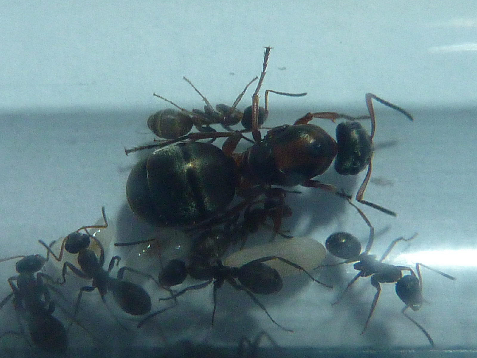 Cela fait maintenant 2 mois que j'ai récolté une gyne Formica et j'aimerais bien savoir plus précisément de quelle Formica il s'agit. La gyne a bien pondu et la fondation comporte maintenant une dizaine d'ouvrières.