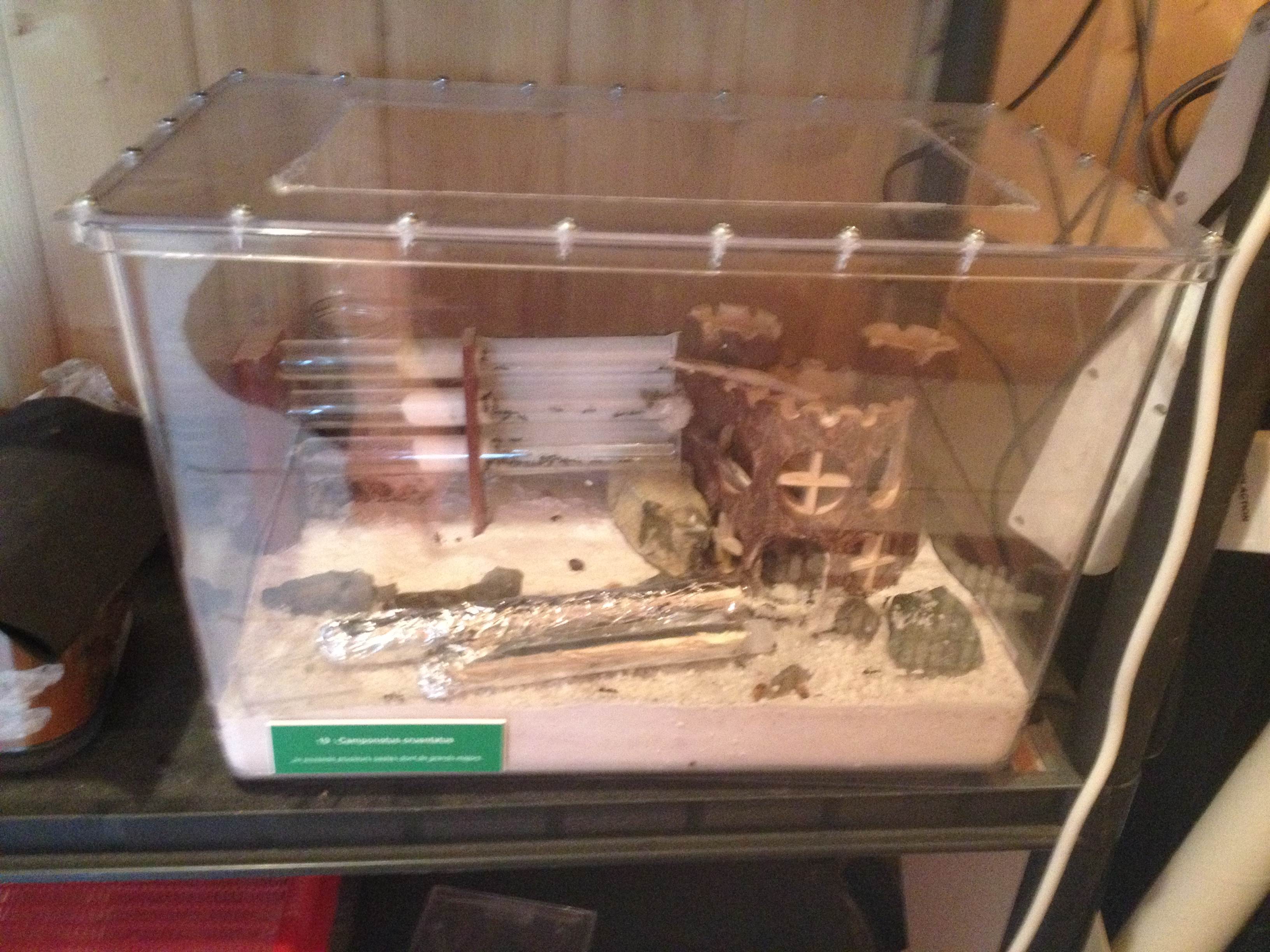 - 1) Une colonie orpheline de Camponotus cruentatus doté de 300 ouvrières initialement, plus que 200 à ce jour, dont une dizaine de majors de très grande taille (vous verrez que ce point a son importance).